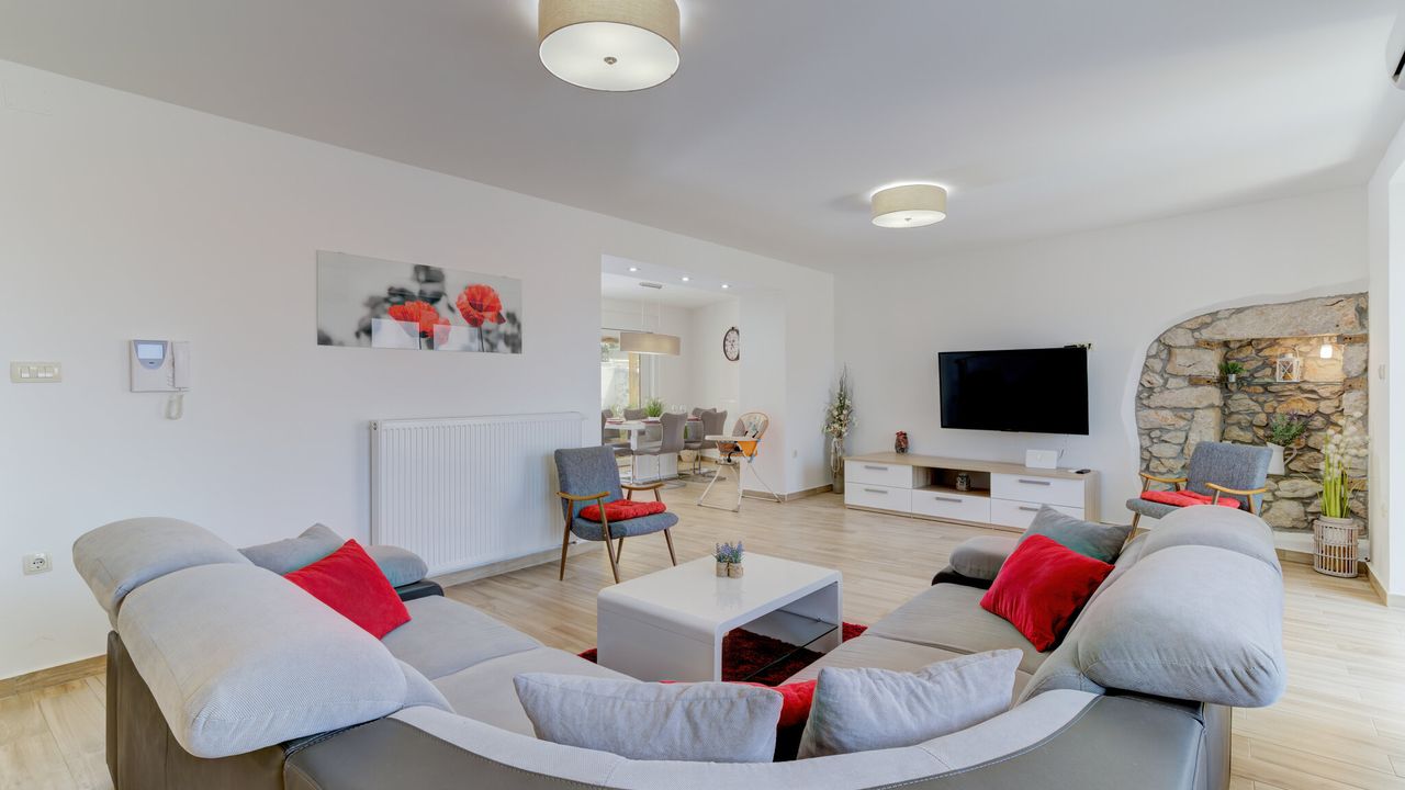 Diese wundersch and ouml;ne, sorgf and auml;ltig eingerichtete Ferienvilla bietet Platz f and uuml;r bis zu 10 Personen und befindet sich in einer ruhigen Gegend des beliebten Urlaubsortes Novi Vinodolski. Der Besitzer legt gro and szlig;en Wert auf jedes Detail, um einen hochwertigen Aufenthalt und einen angenehmen Urlaub f and uuml;r seine G and auml;ste zu gew and auml;hrleisten.Auf dem ger and auml;umigen Grundst and uuml;ck befindet sich ein beheizter Pool mit einer Gr and ouml; and szlig;e von 29 m and sup2;, der zu jeder Tageszeit zum Entspannen einl and auml;dt. Direkt neben dem Pool gibt es eine gro and szlig;e, m and ouml;blierte Terrasse mit einem Au and szlig;enkamin, einem Essbereich und Sonnenliegen and ndash; perfekt, um die Sonne zu genie and szlig;en und zu relaxen.