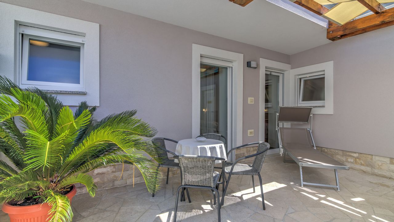 eigene Terrasse, Bestuhlung, Liegen, Sonnenschirm, Terrassengr and ouml; and szlig;e: 50 m and sup2;
