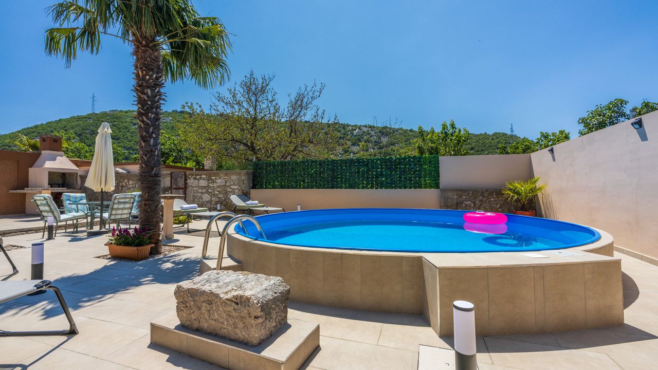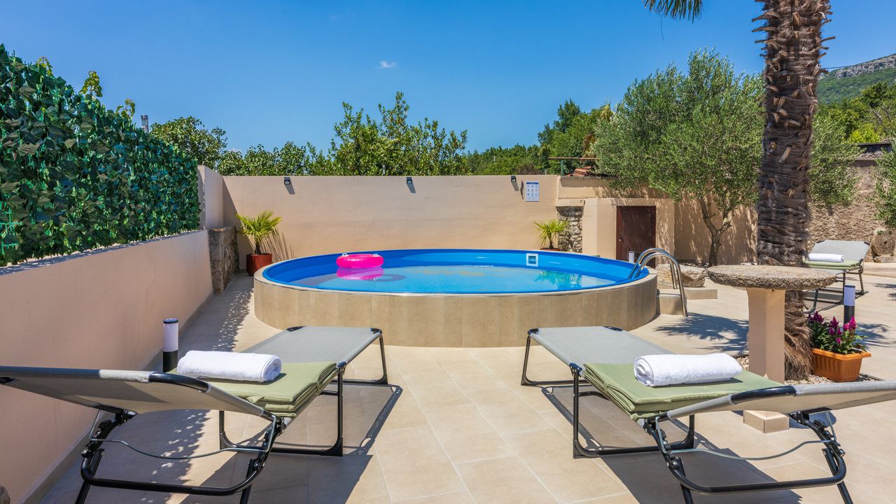 Der sehr angenehme Au and szlig;enbereich besteht aus einer and nbsp; Terrasse, einem 24 m and sup2; gro and szlig;en Swimmingpool und einem traumhaften Poolbereich. Dieser ist mit einem Tisch mit Sitzgelegenheiten f and uuml;r alle Personen, einem Grill, einer Sp and uuml;le und einer Aussendusche ausgestattet.