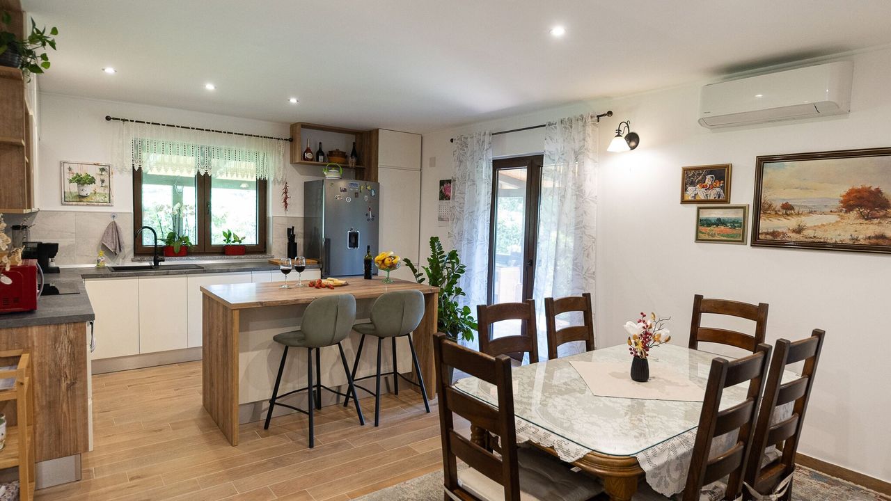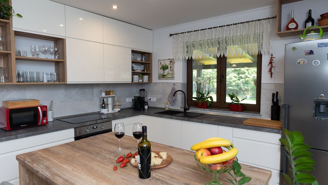 In einer ruhigen Lage, umgeben von viel Natur, befindet sich diese sch and ouml;ne Erdgescho and szlig;wohnung welche ideal f and uuml;r einen Familienurlaub geeignet ist.Die Wohnung besteht aus einem ger and auml;umigen Wohn/Esszimmer mit K and uuml;che im selben Raum, einem Schlafzimmer zwei Badezimmern und einer traumhaften Terrasse mit Bestuhlung und and Uuml;berdachung.