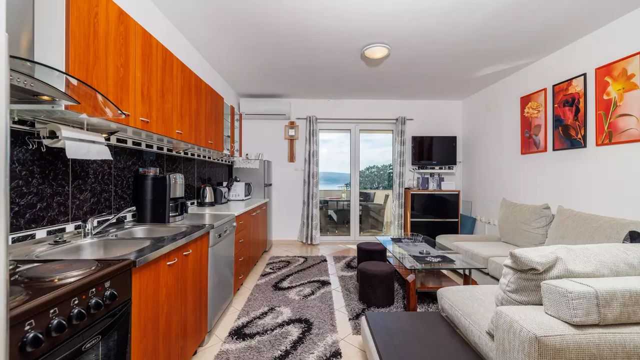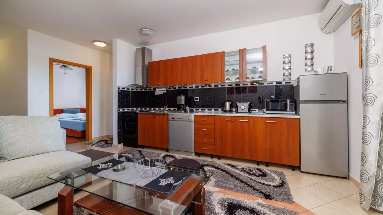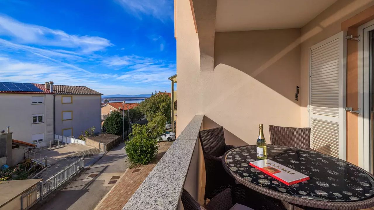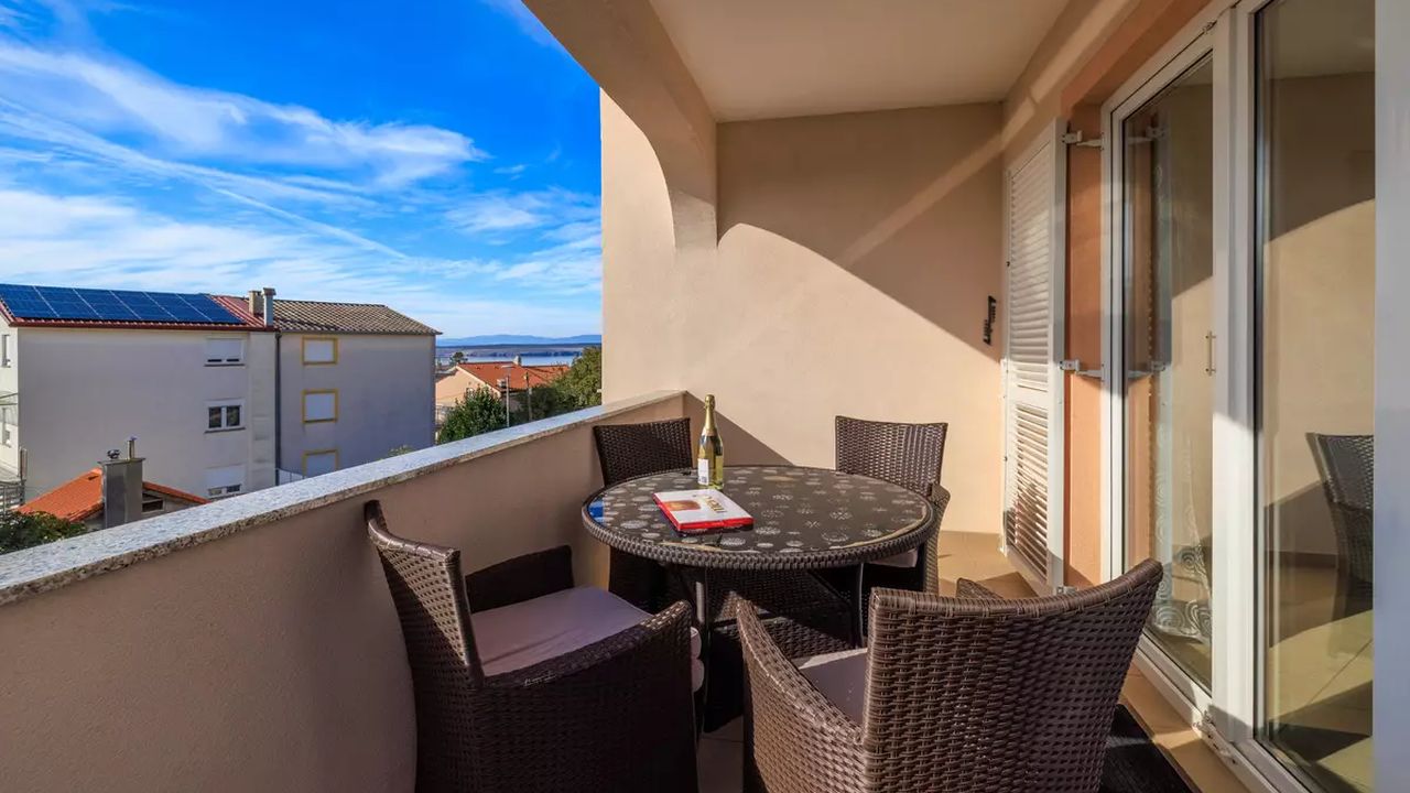 Diese wundersch and ouml;ne und lichtdurchflutete Ferienwohnung besticht durch ihre zentrale Lage und den modernen Komfort. Beim Betreten der Wohnung erwartet Sie ein gro and szlig;z and uuml;giger Eingangsbereich, der nahtlos in den offenen Wohn- und Essbereich mit K and uuml;che and uuml;bergeht.Der Wohnbereich ist mit einer eleganten Einbauk and uuml;che ausgestattet, die alle n and ouml;tigen Ger and auml;te bietet und gen and uuml;gend Platz f and uuml;r kulinarische Entfaltung l and auml;sst. Ein Highlight der Wohnung ist der gro and szlig;z and uuml;gige Balkon, der zum Entspannen einl and auml;dt und einen wunderbaren Blick auf die Adria bietet.