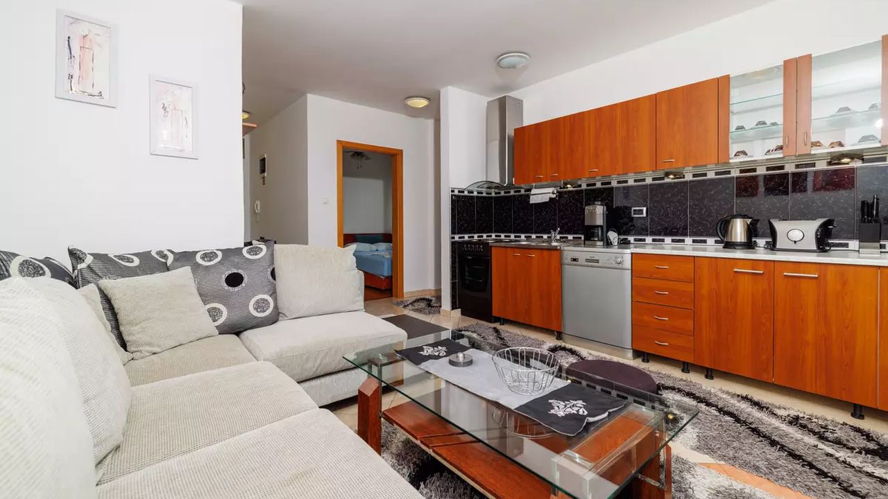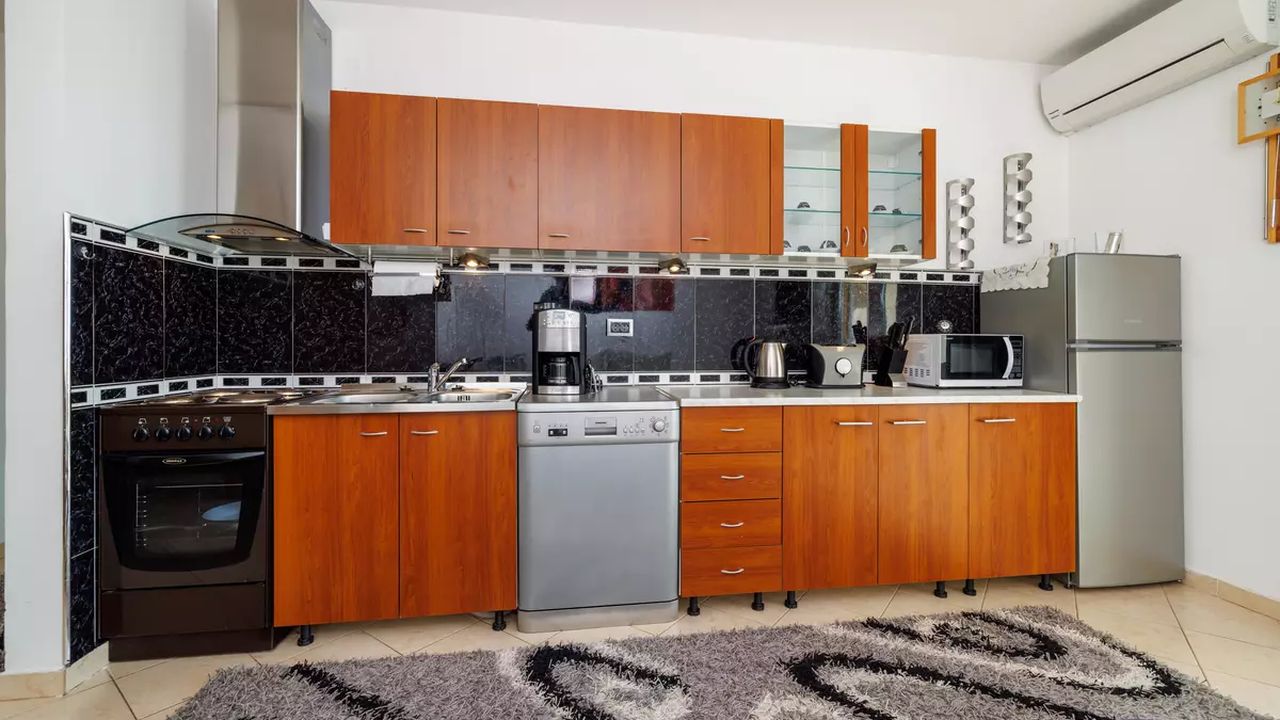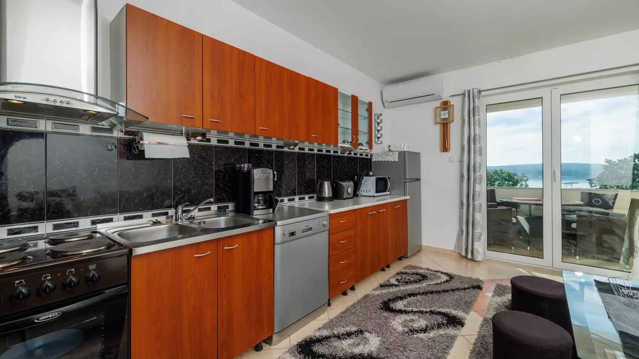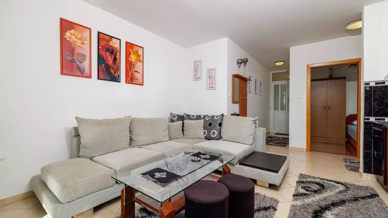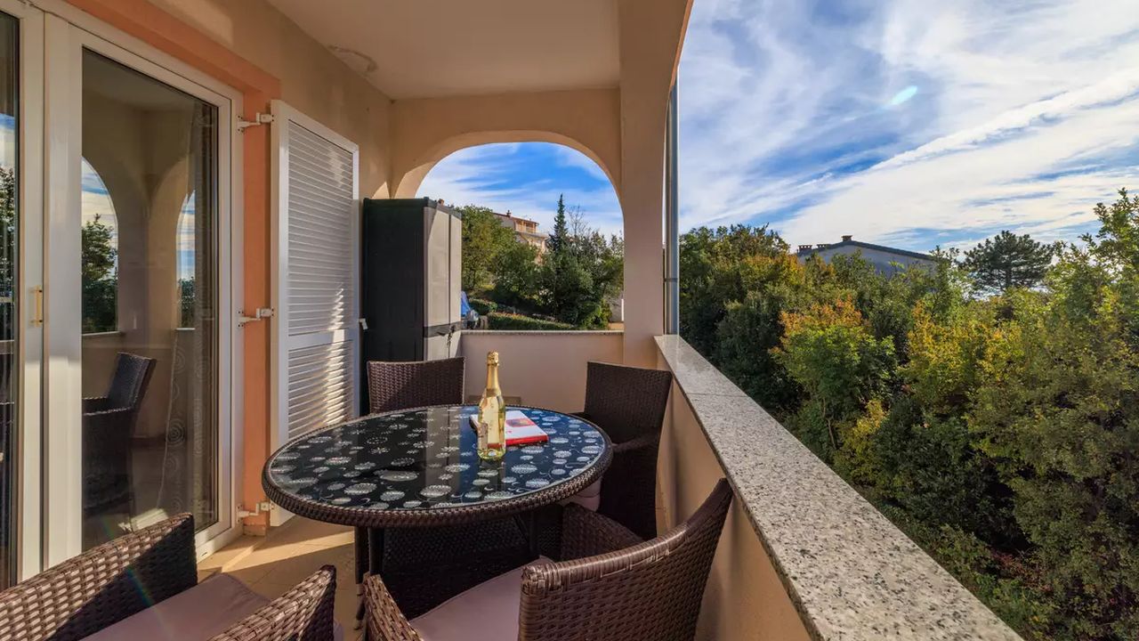 Diese wundersch and ouml;ne und lichtdurchflutete Ferienwohnung besticht durch ihre zentrale Lage und den modernen Komfort. Beim Betreten der Wohnung erwartet Sie ein gro and szlig;z and uuml;giger Eingangsbereich, der nahtlos in den offenen Wohn- und Essbereich mit K and uuml;che and uuml;bergeht.Der Wohnbereich ist mit einer eleganten Einbauk and uuml;che ausgestattet, die alle n and ouml;tigen Ger and auml;te bietet und gen and uuml;gend Platz f and uuml;r kulinarische Entfaltung l and auml;sst. Ein Highlight der Wohnung ist der gro and szlig;z and uuml;gige Balkon, der zum Entspannen einl and auml;dt und einen wunderbaren Blick auf die Adria bietet.