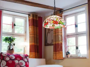 Diese Ferienwohnung ist 47qm groß und besteht aus einem Wohnbereich, der nur durch Balken von einer extravaganten, offenen Küche getrennt ist. Der Esstisch wurde aus einer langen Holzschwarte mit sichtbarer Rinde gefertigt. Die alte Wohnzimmertür und die sehr breiten Dielen lassen das Alter des Hauses erkennen. Vorsicht für Gäste über 2m: sie könnten an die Deckenbalken stoßen. Der Name »Sonnenschein« hat übrigens seine Berechtigung, da die Sonne im laufe des Tages von drei verschiedenen Seiten in dieses Zimmer scheint. Ein Schlafzimmer, Bad und Flur machen das Ganze noch komplett. Auch hier kann gegebenenfalls die Ledercouch für ein bis zwei weitere Gäste zum Schlafen umfunktioniert werden