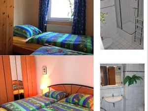 Es stehen Ihnen ein Wohnzimmer mit Küchenzeile , ein Schlafzimmer mit Doppelbett und Fernseher, und ein Schlafzimmer mit zwei Einzelbetten zur Verfügung. Als fünftes Bett kann ein Klappbett 90x200cm dazu gestellt werden. Ein Badezimmer mit Dusche/WC und Spiegelschrank und Fön, sowie ein Flur mit Garderobe und ein Abstellraum.