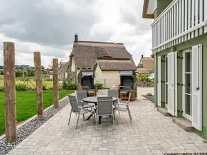 Wunderschönes Reetdachhaus, 2021 fertiggestellt, mit ca. 135 qm Wohnfläche für bis zu 5 Personen, 2 Etagen, mit großer Außenterrasse und Balkon auf 900 qm Grundstück.Gehobene Ausstattung mit moderner, geschmackvoller Einrichtung. 3 Schlafzimmer, 2 Bäder, Sauna, Kaminofen, Fußbodenheizung, Hauswírtschaftsraum mit Waschmaschine und Trockner. Kostenloser Internetzugang ( W-Lan ).