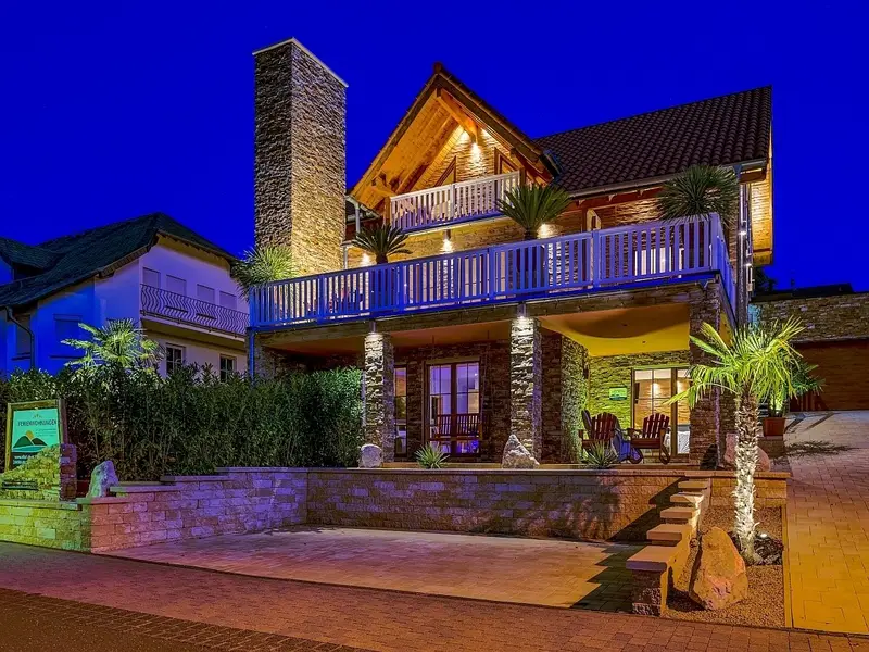 Luxus Ferienwohnung, kompletter Neubau! Amerikanischer, alpenländischer und mediterraner Baustil, naturverbunden, hochwertig & modern eingerichtet, nahe zum See, Wifi, 2 Schlafzimmer mit Boxspringbetten, 2 Wellnessbäder mit 2 x 2 Personen-Whirlpools und eine Dampfdusche als Duschtempel, eigene Sauna, große Veranda und Terrasse mit Ecklounge, Esstisch, Schaukelstühlen, KolonialsesselnDie luxuriöse Ferienwohnung Chalet Seenähe befindet sich in einem völlig neu gebauten Haus in Schalkenmehren. Nahe zum See gelegen. Die Wohnung wurde mit 5 Sternen zertifiziert.