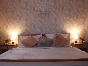 Die Ferienwohnung ist so eingerichtet, dass Sie sich sofort wohlfühlen können: Zwei Schlafzimmer mit Doppelbett, ein Wohnzimmer mit großem Sofa und Fernseher, eine Essecke, eine vollausgestattete Küche und ein kleines Bad mit Dusche und WC auf halber Treppe, einen Garten und Parkplatz direkt vor dem Haus. Außerdem gibt es kostenloses WLAN, Gartenmöbel und einen Grill. Vom Garten aus haben Sie einen wunderschönen Blick auf die Berge.Es gibt zwei Schlafzimmer in unserer Wohnung, die mit sehr viel Liebe renoviert und eingerichtet wurden. In jedem dieser Zimmer befindet sich ein kuschliges Doppelbett, Schränke für die Kleidung und Gute Nacht Lektüre.
