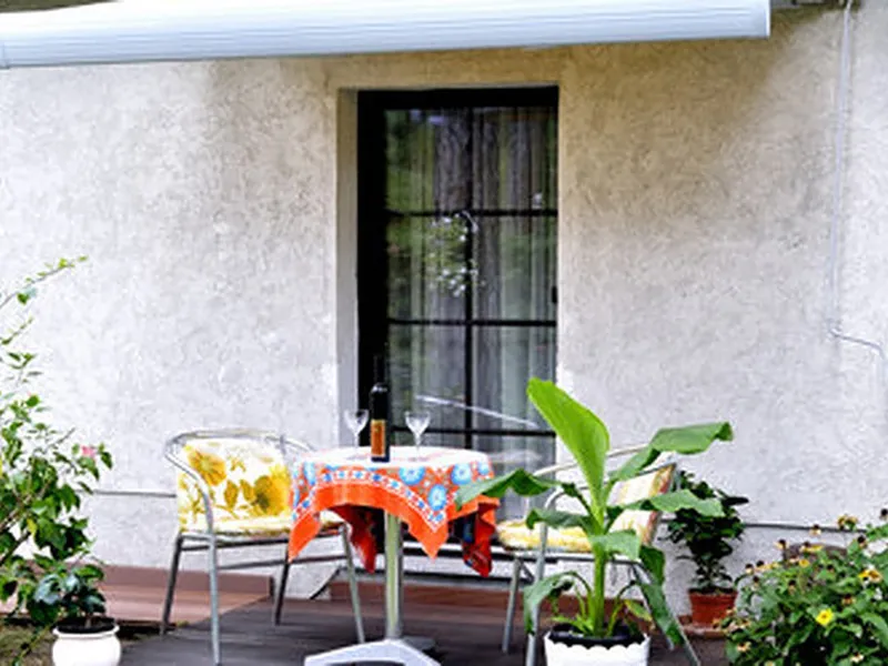 Das Ferienhaus ist eingebettet in die Siedlung Waldesruh, deren Name sich aus der Lage der Siedlungshäuser mitten zwischen hohen Nadelbäumen ergibt. In naher Umgebung kann man in waldreicher Gegend ausgiebige Wanderungen oder Spaziergänge unternehmen. Relativ nah gelegen sind Möglichkeiten für Baden, Tennis, Sport, Reiten, Sauna oder auch Einkaufen. Siehe auch unter Umgebung.Mediterran Suite, ist im an mediterrane Farbgebung angelehnten Stil gestaltet und verfügt über zwei Zimmer sowie eine kleine Küche mit Kochgelegenheit. Das Schlafzimmer hat zwei Einzelbetten, im Wohnzimmer kann eine Schlafcouch für zwei weitere Personen aufgebettet werden.