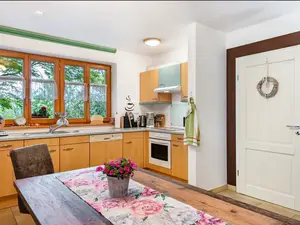Richtige Urlaubsstimmung kommt auf der schönen Terrasse der Ferienwohnung auf. Die gut ausgestattete Küche besitzt unter anderem einen Kühlschrank, einen Herd zum Kochen und sogar eine Spülmaschine.