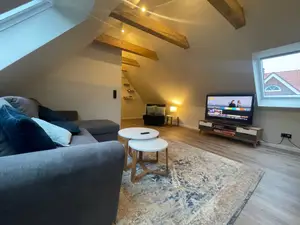 Unsere alte Kate gibt der neuen Ferienwohnung ihren Namen. In ihr wurden Altes und Neues auf besondere Art verbunden. So ist die Eingangstür etwas niedriger, als es üblich ist. Die gemütliche Ferienwohnung ist geschmackvoll und hochwertig eingerichtet und bietet Platz für maximal 5 Personen. Sie verfügt über eine offene Küche, ein Schlafzimmer mit drei Betten und den Wohnbereich mit einem Schlafsofa und einem Schlafsessel. In einer kleinen Kammer können wir ein weiteres Einzelbett anbieten.Für einen gemütlichen Abend steht Ihnen ein Fernseher zur Verfügung.