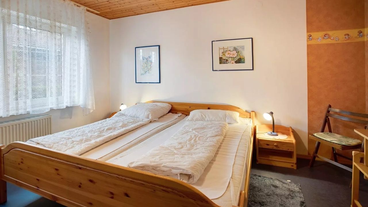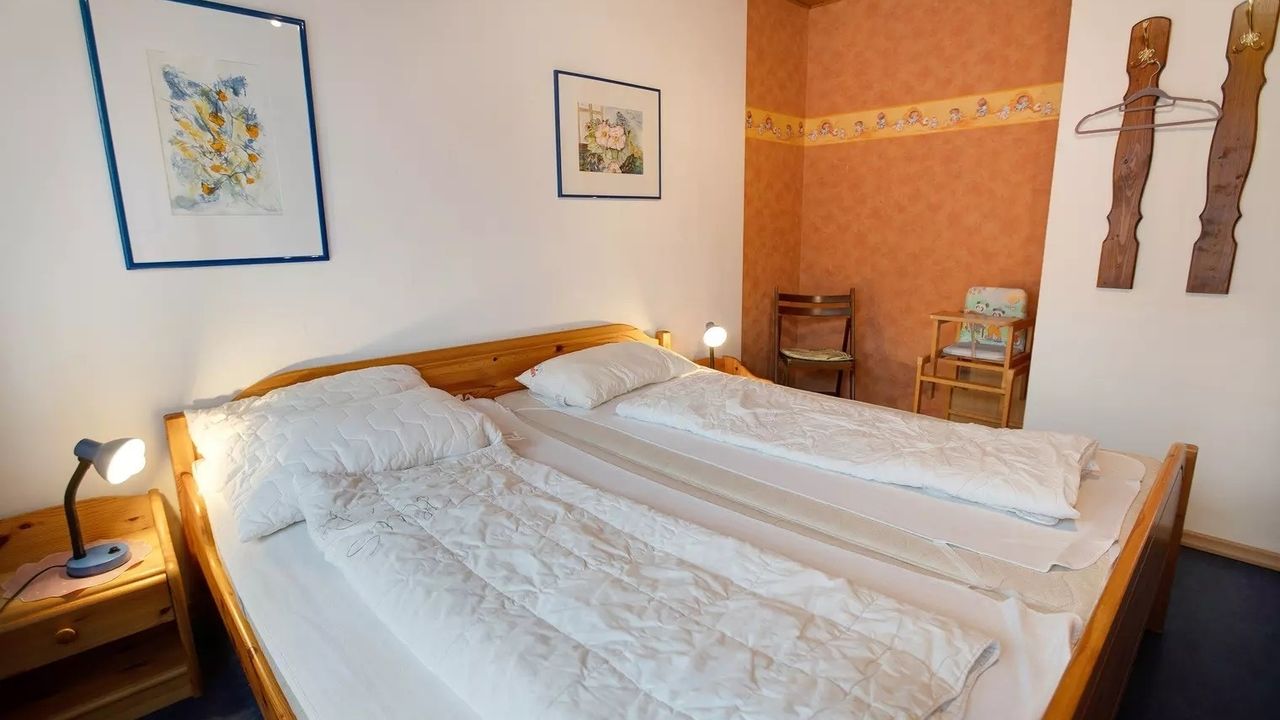 Schlafzimmer 1 hat 1 Doppelbett.