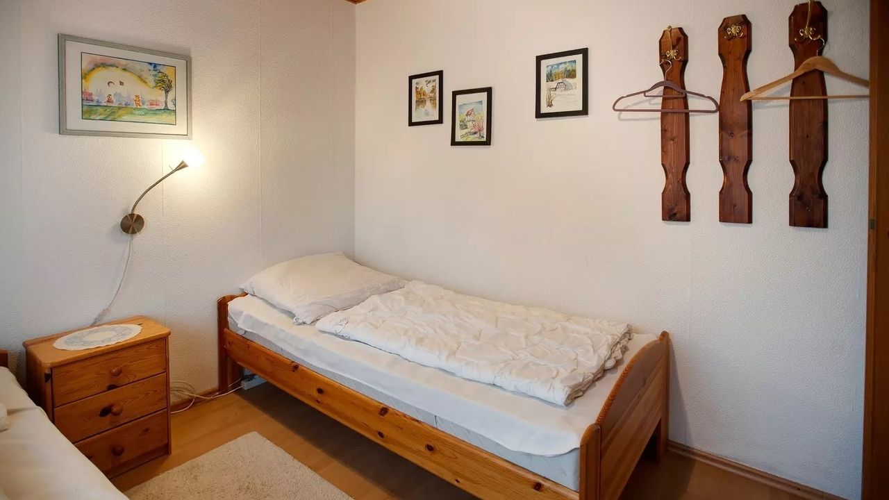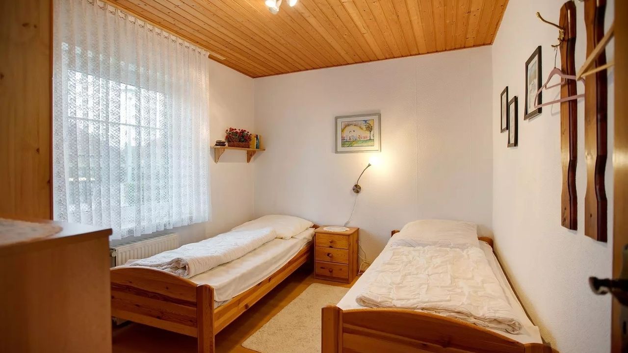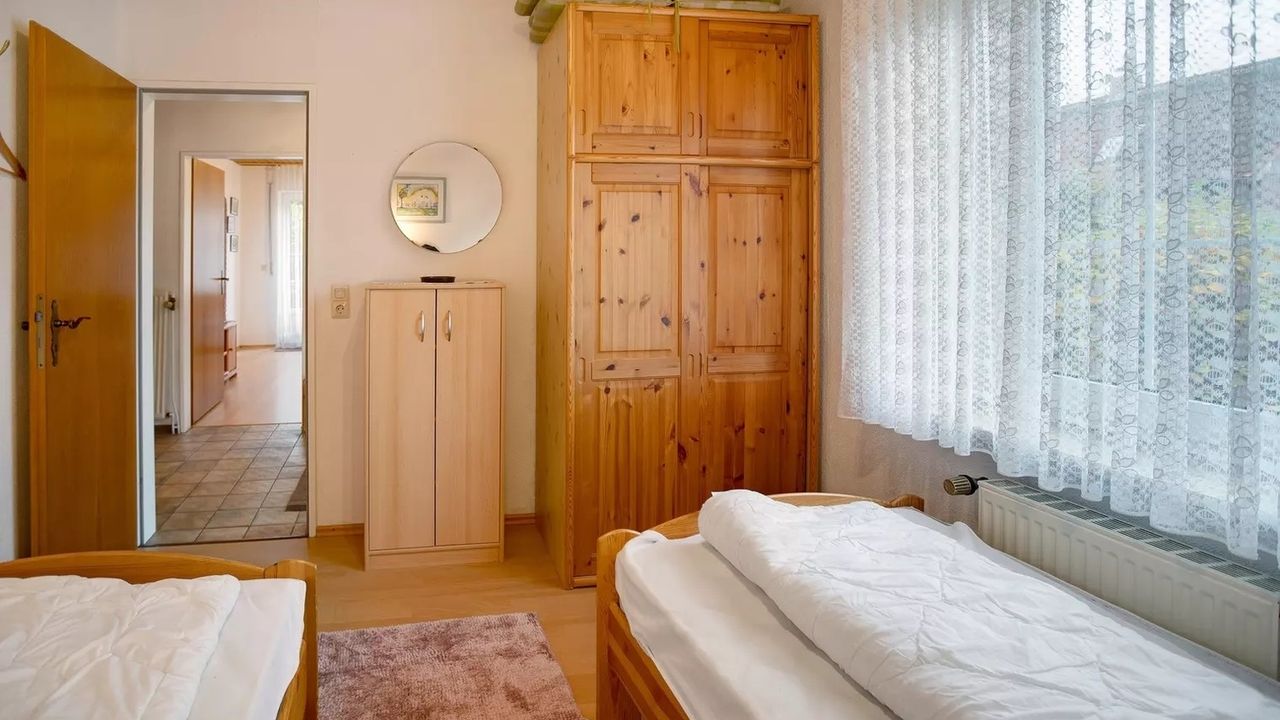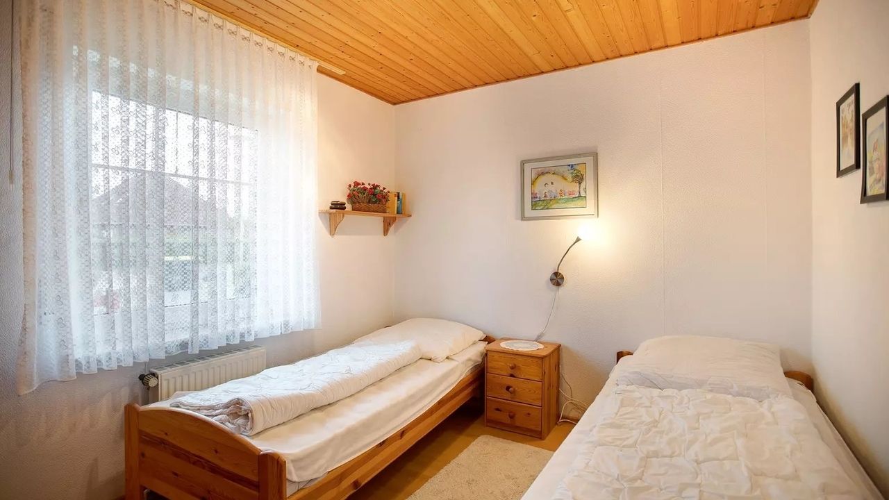 Schlafzimmer 2 hat 2 Einzelbetten.