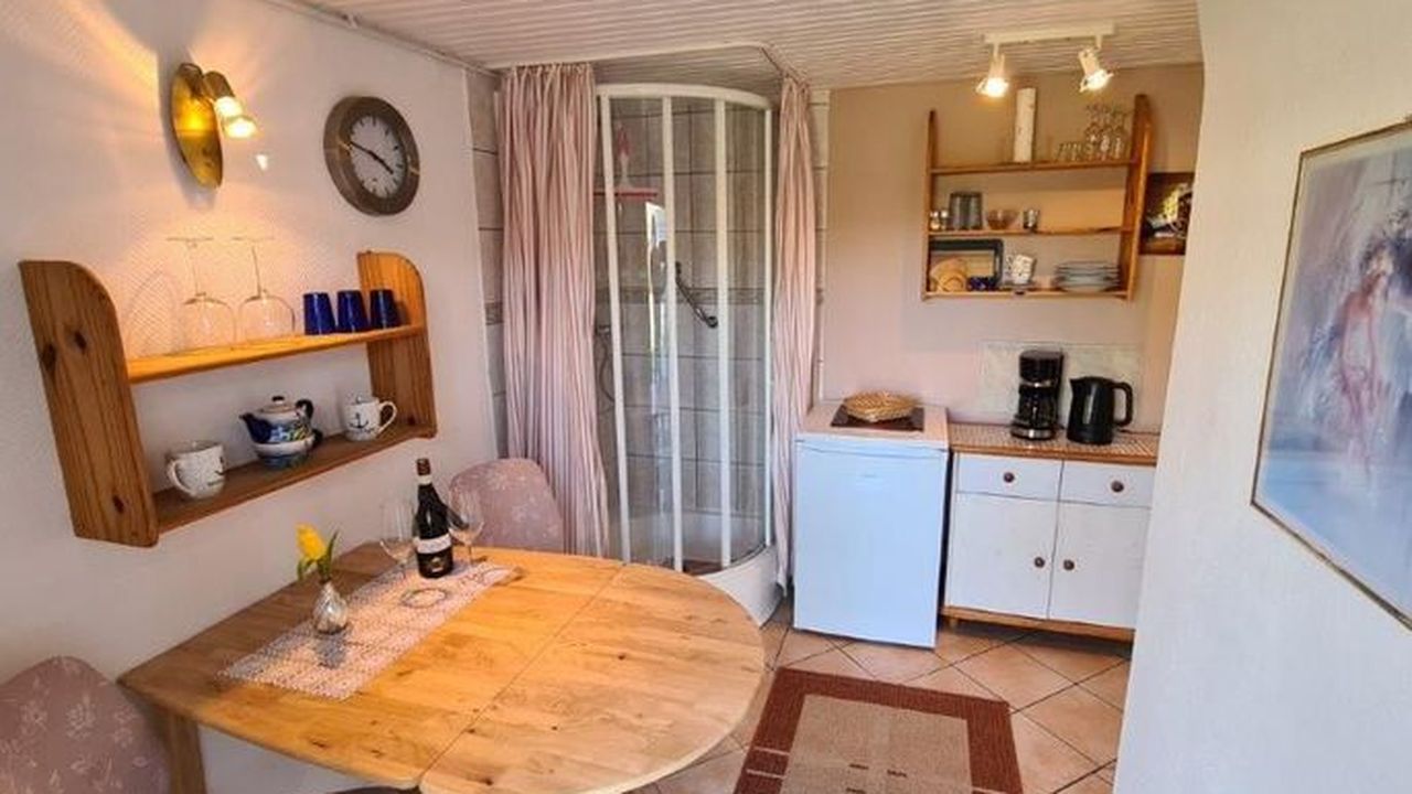 FW 25: Zweiraumwohneinheit im EG für 2 Personen. Kühlschrank vorhanden, Dusche im ersten Wohnbereich.Ferienwohnung mit eigener Terrasse.