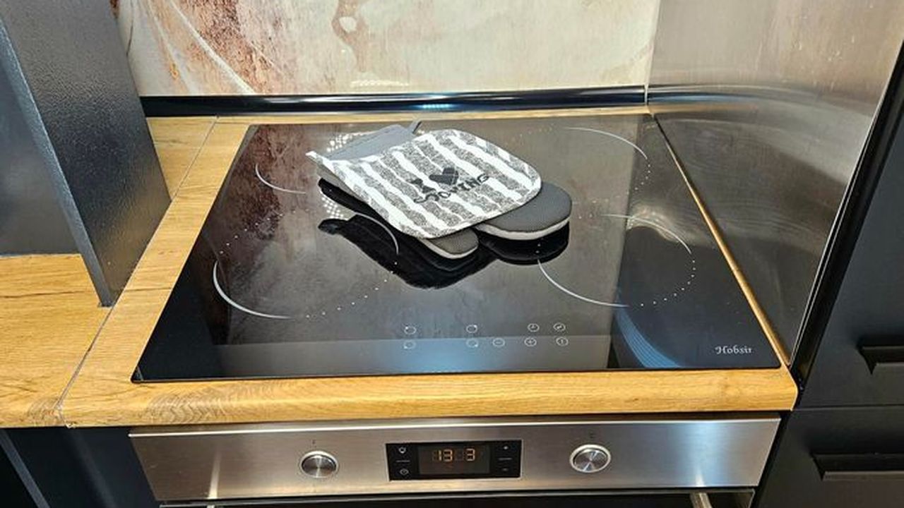 Voll ausgestattete Küche mit Kühlschrank mit Gefrierfach, Spülmaschine, 4 Feld Ceranfeld, Backofen, Kaffeemaschine,