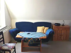 Im Schlafzimmer schlafen Sie in einem bequemen Doppelbett. Nach Rücksprache mit dem Vermieter eventuell Aufbettung für ein Kind möglich.