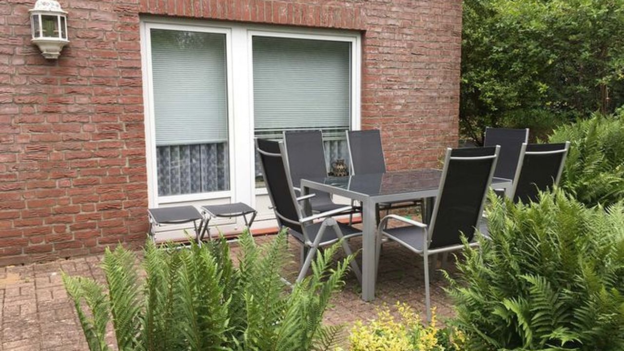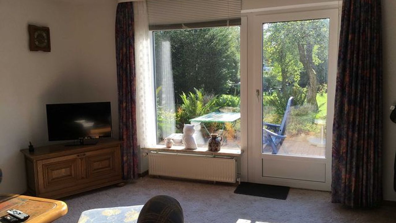 Erdgeschoss:Wohnzimmer, 1 Schlafraum mit Doppelbett 1 x 1,90 m breit und 1 Schlafraum mit 2 Einzelbetten zusammen gestellt 1,80 m breit , Duschbad, sonnige Terrasse direkt am Haus, Gartenteil