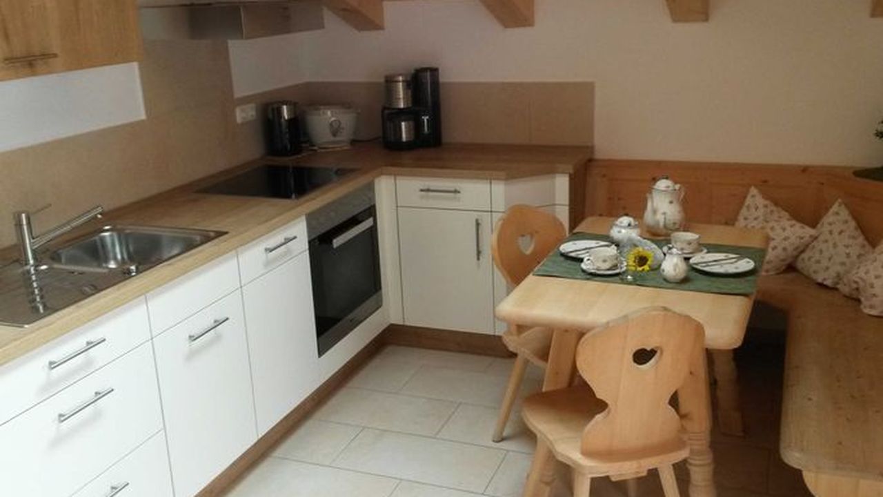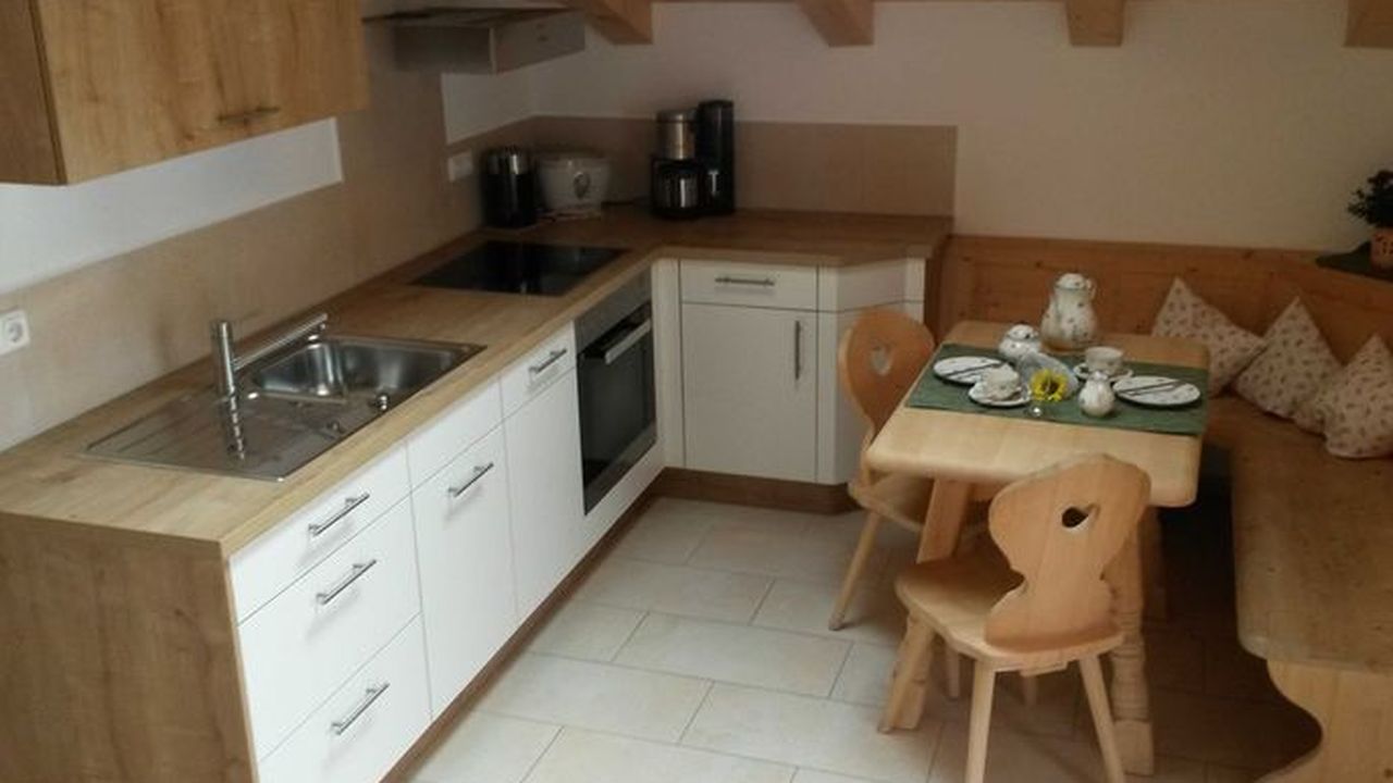 Unsere neuerbaute Ferienwohnung ist im ländlichen bayrischen Stil eingerichtet.Sie besteht aus 1 Schlafzimmer, einem großen Bad (Badewanne, Dusche u. WC), einer sehr großzügigen Wohnküche mit Südbalkon. Durch das breite Vordach ist der Balkon sehr geschützt.