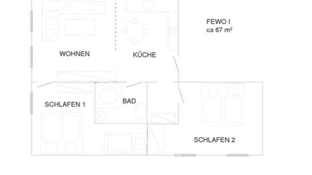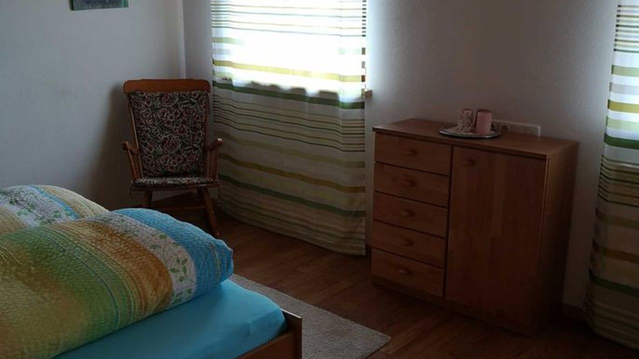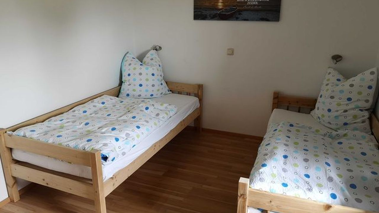 Die gemütliche 3 Zimmer-Wohnung befindet sich im 1. Stock und bietet Platz für bis zu 4 Personen. Sie verfügt über 2 Schlafzimmer (Doppelbett und 2 Einzelbetten), einen Wohnraum mit komplett eingerichteter Küche sowie ein Bad mit Dusche und WC.gemütliche Wohnung mit zwei Schlafzimmern, Wohnzimmer mikt Schlafcouch u. Küche, Badezimmer mit Wanne, Dusche und WC.