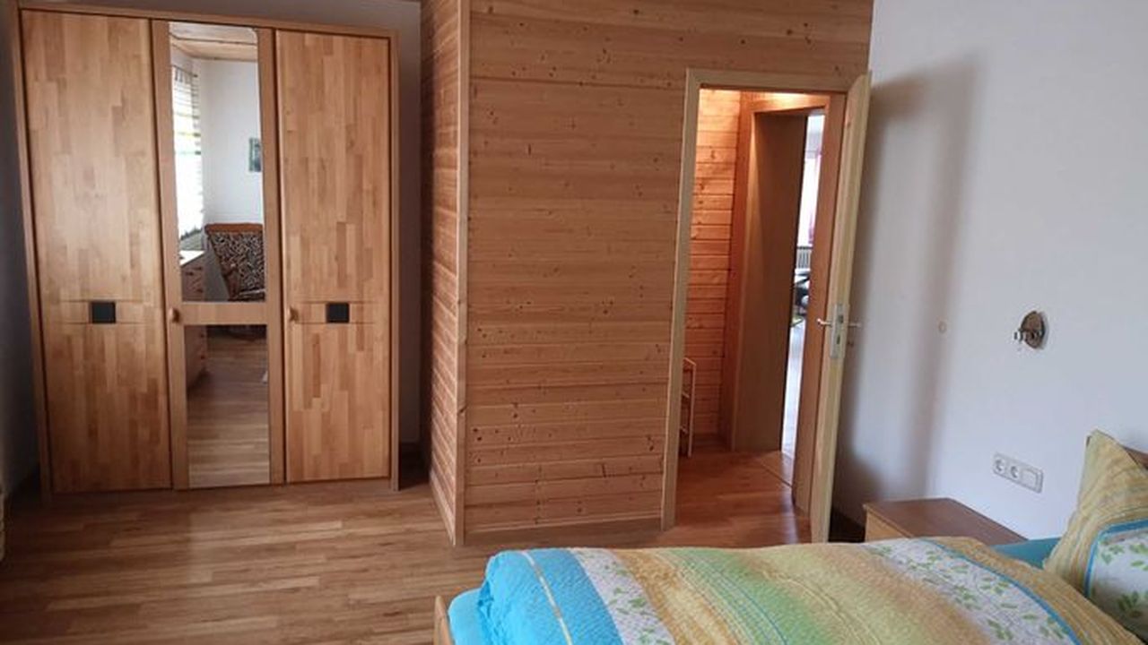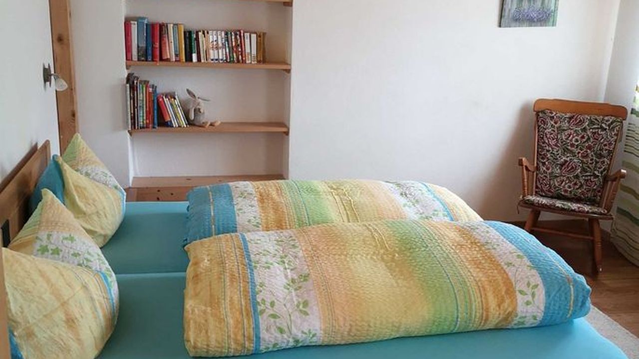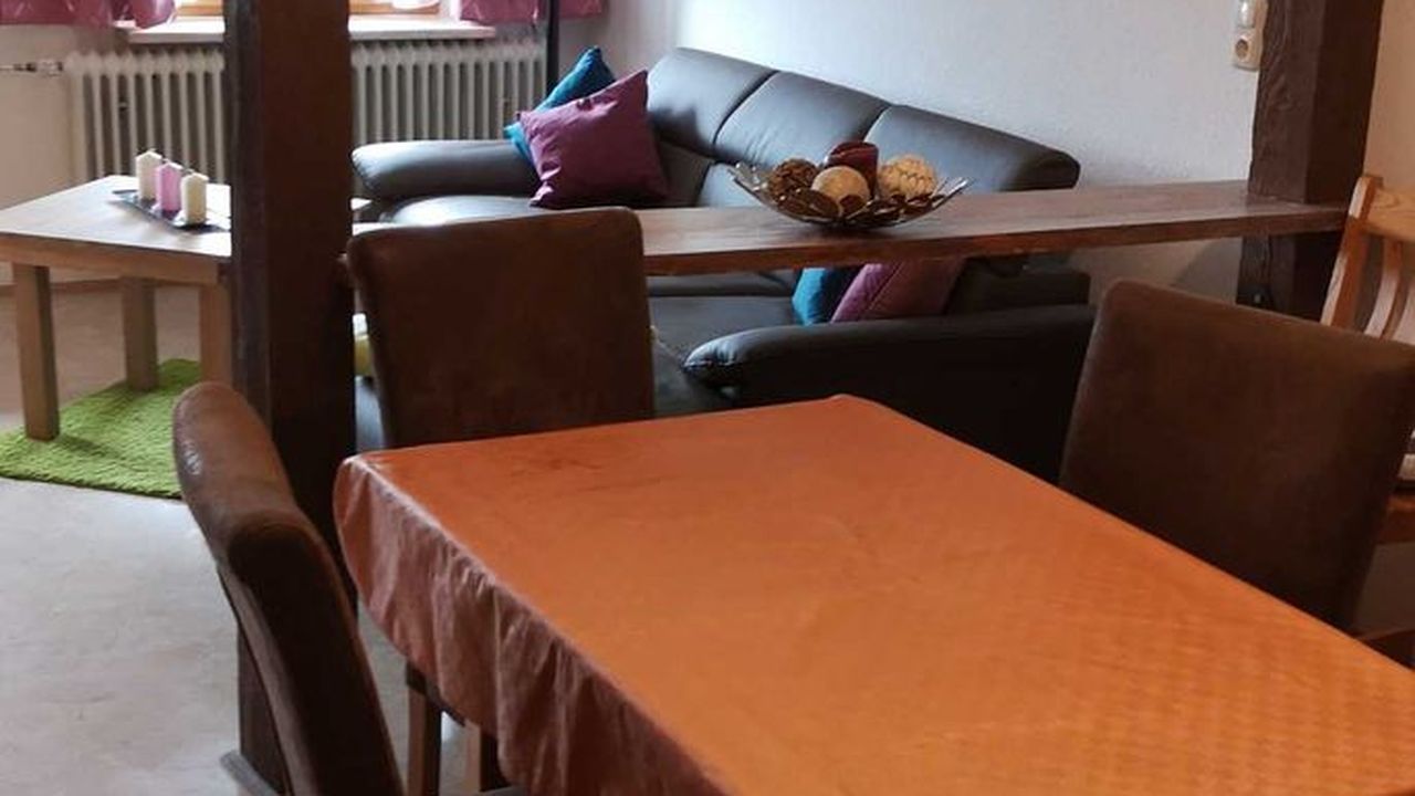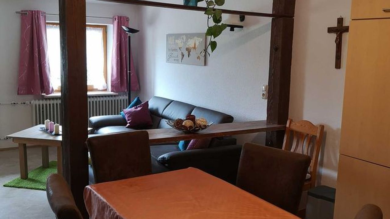 Die gemütliche 3 Zimmer-Wohnung befindet sich im 1. Stock und bietet Platz für bis zu 4 Personen. Sie verfügt über 2 Schlafzimmer (Doppelbett und 2 Einzelbetten), einen Wohnraum mit komplett eingerichteter Küche sowie ein Bad mit Dusche und WC.gemütliche Wohnung mit zwei Schlafzimmern, Wohnzimmer mikt Schlafcouch u. Küche, Badezimmer mit Wanne, Dusche und WC.