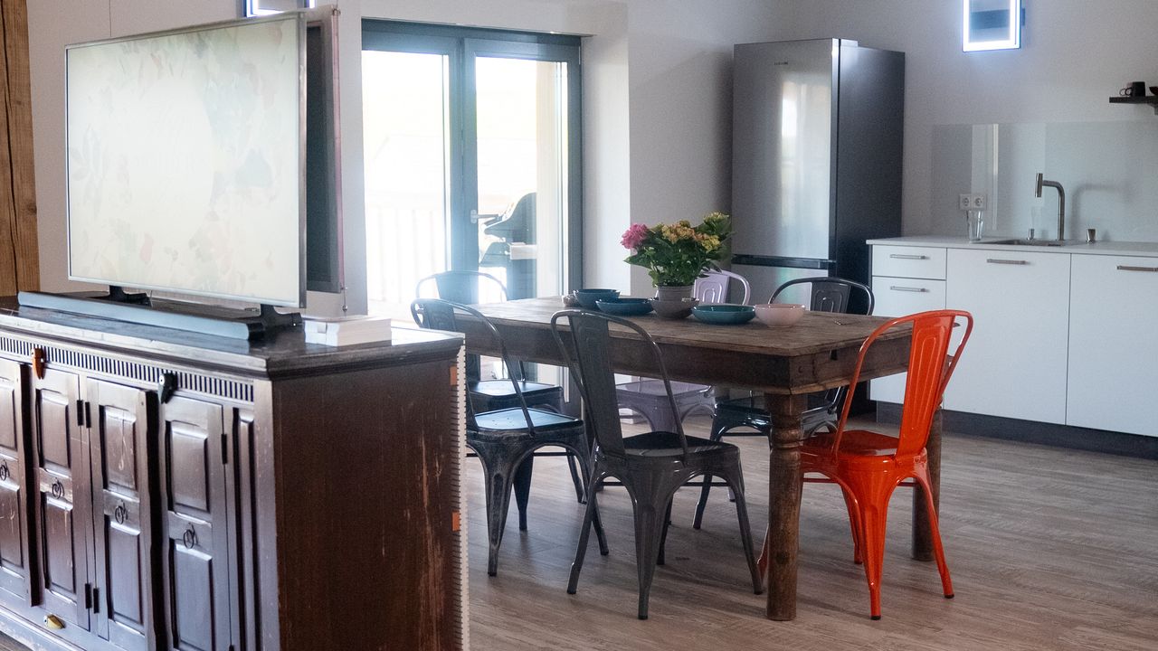 Erstklassige Küchenausstattung: Beginnen Sie den Tag mit frisch zubereitetem Kaffee aus der SENSEO Maschine oder einem Tee aus dem bereitstehenden Wasserkocher. Ob Kochen, Backen oder Grillen – die Küche bietet alles, was Sie für kulinarische Erlebnisse brauchen, inklusive Mikrowelle und Geschirrspüler. Kochen Sie mit Le Creuset-Steinzeug, Opinel-Besteck und einem WMF Topfset. Zusammen mit dem Außengrill können Sie wunderschöne Grillabende inmitten der herrlichen Natur genießen.