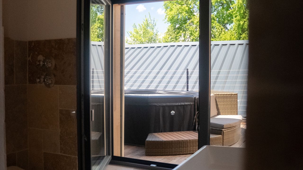 Der Whirlpool auf der Terrasse sorgt für das Wellnessfeeling.
