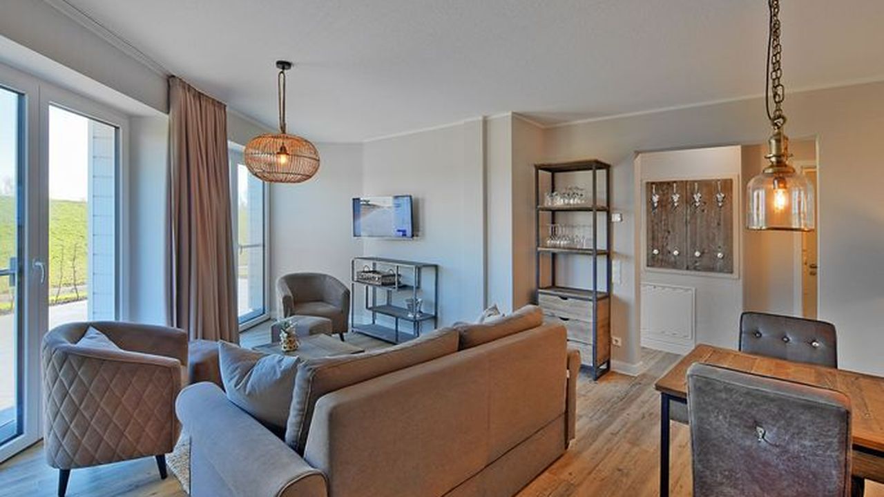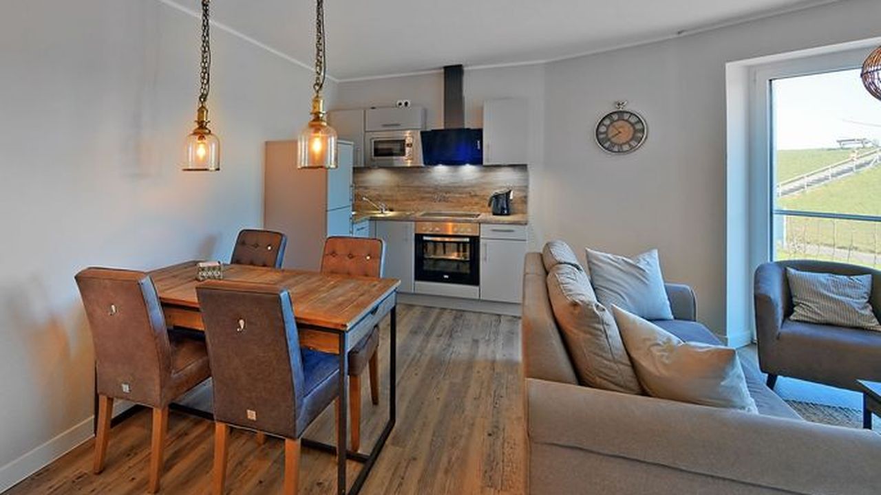 Die Wohnung D2 R3 im Haus Elbaussicht verfügt über zwei separate Schlafzimmer, einen Wohn-, Koch- und Essbereich und einer sonnigen Südterrasse.Ausstattung auf einen Blick: