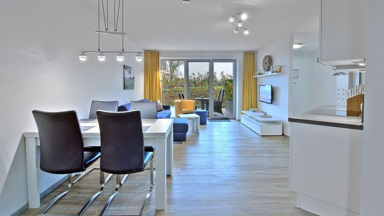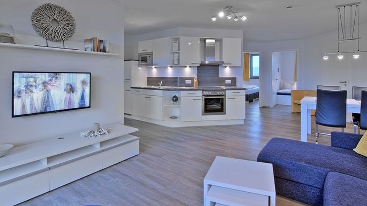 Die Appartements der Kategorie D1 R3 im Haus Lee verfügen über zwei separate Schlafzimmer, Wohn-, Koch- und Essbereich und einer sonnigen Südterrasse.Ausstattung auf einen Blick: