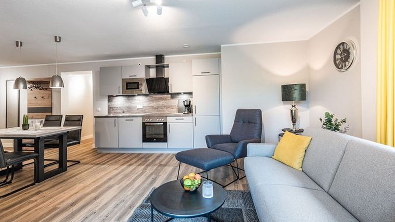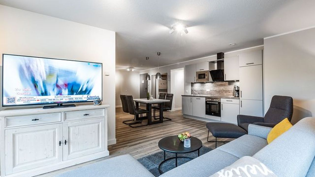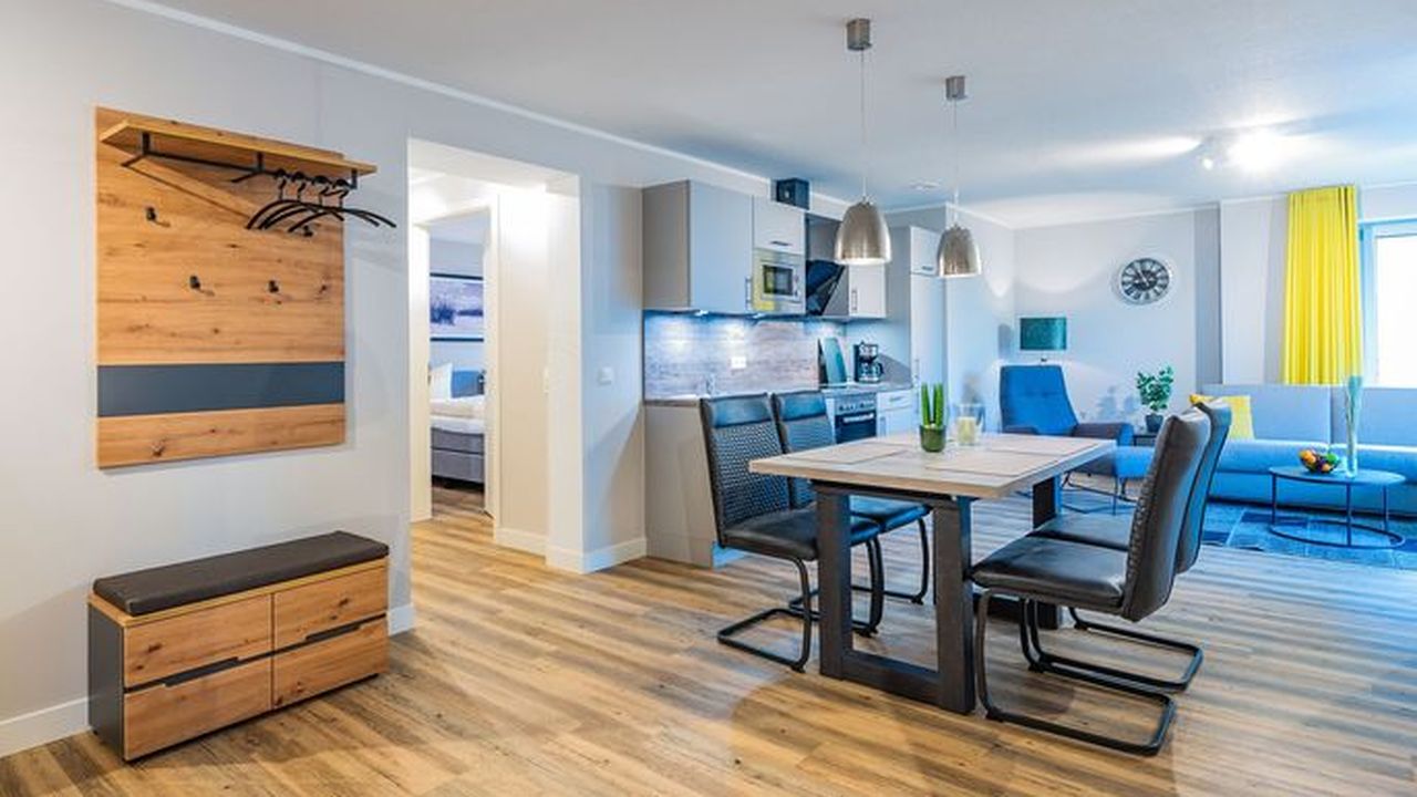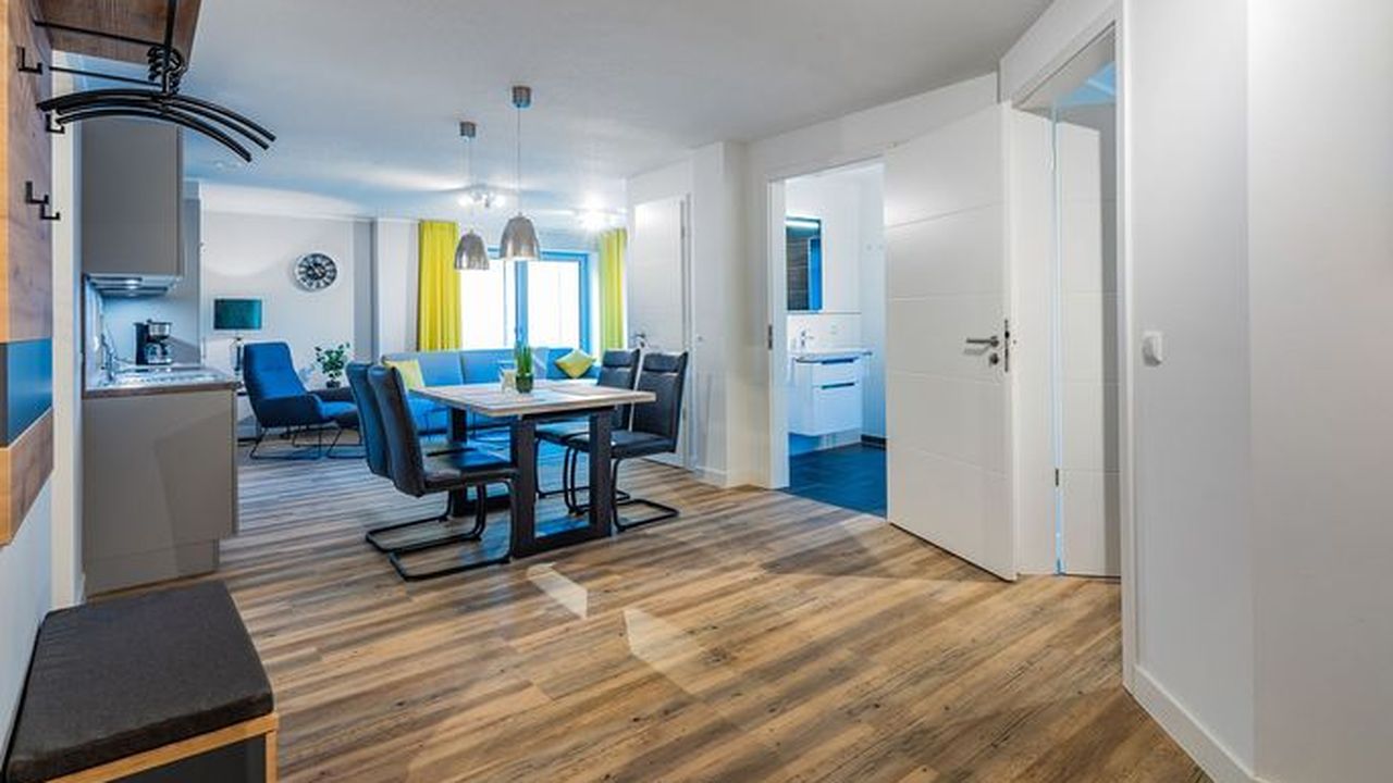 Das Appartement der Kategorie D1 R4 in unserem Ferienhaus Elbbrise bietet Ihnen eine komfortable Ferienwohnung mit drei separaten Schlafzimmern, einem offenen Wohn-, Koch- und Essbereich sowie einer sonnigen Südterrasse, die zum Entspannen und Genießen einlädt.Ausstattung auf einen Blick:
