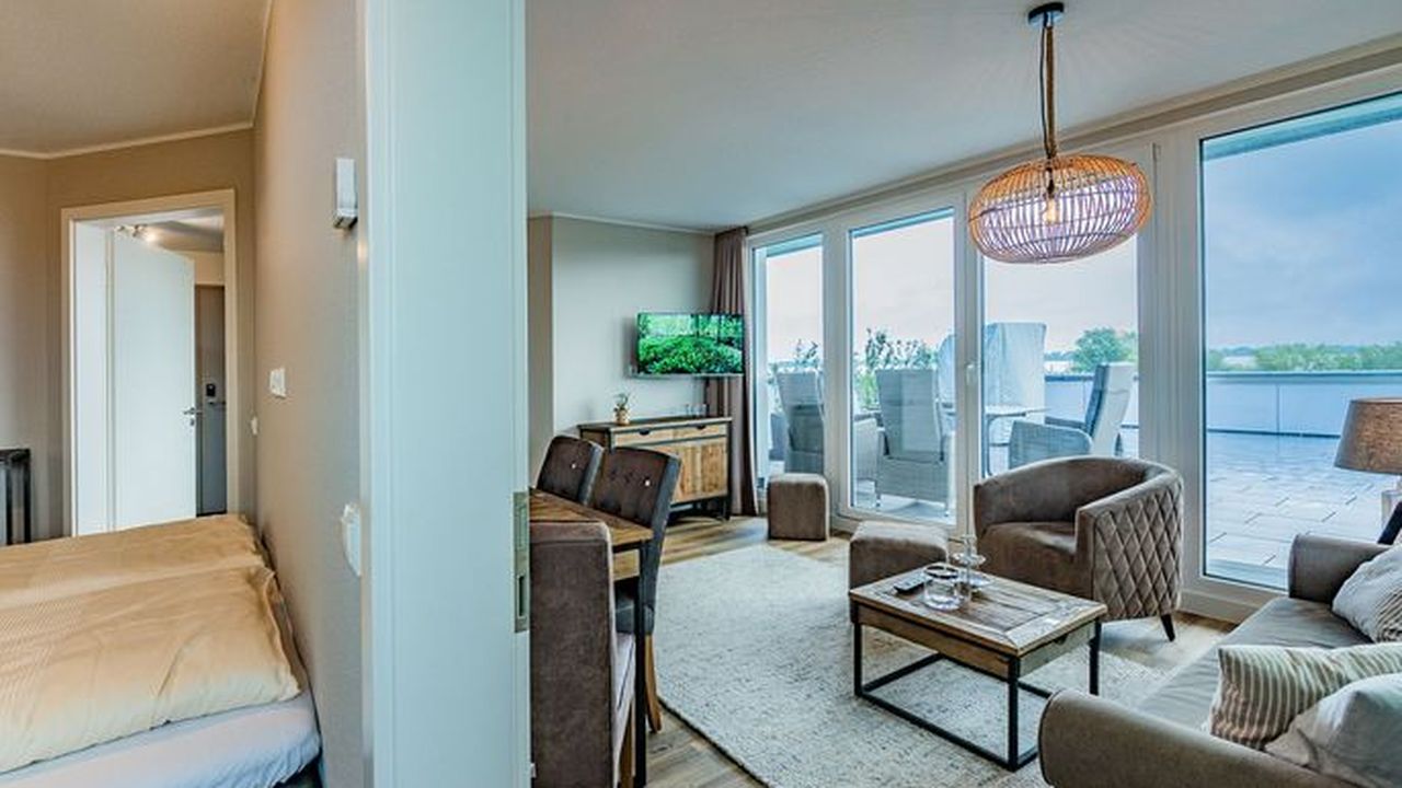 Ferien auf Krautsand GmbH - Elbaussicht Appartement D4 R2 - Dachterrasse mit Elbblick