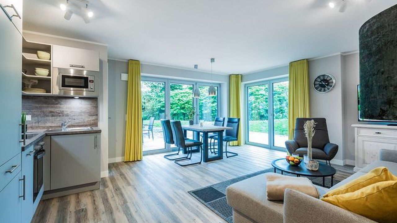 Das Appartement der Kategorie D1 R3 in unserem Ferienhaus Elbbrise bietet Ihnen eine komfortable Ferienwohnung mit zwei separaten Schlafzimmern, einem offenen Wohn-, Koch- und Essbereich sowie einer sonnigen Südterrasse, die zum Entspannen und Genießen einlädt.Ausstattung auf einen Blick: