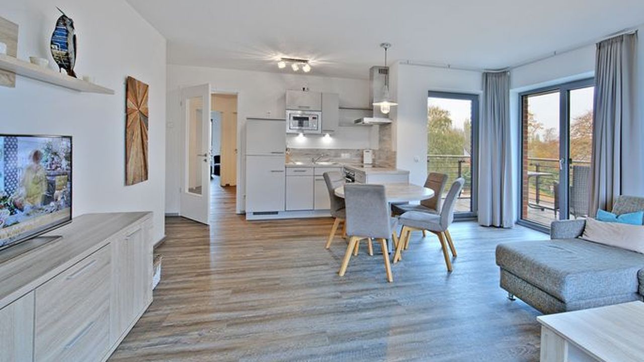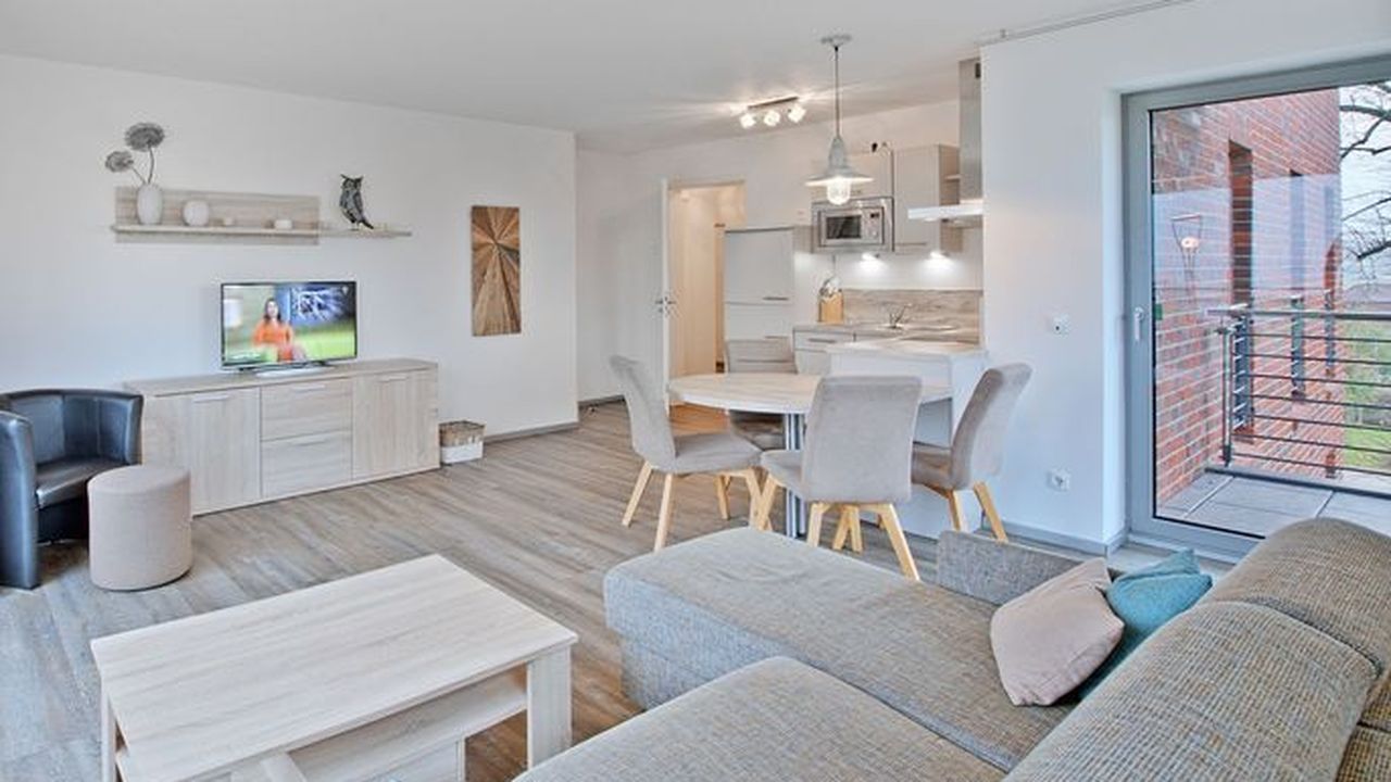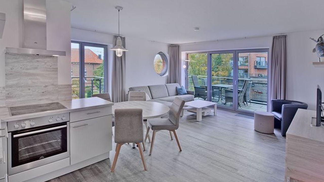 Die Appartements der Kategorie D4 R3 in unserem Ferienhaus LUV bieten Ihnen eine komfortable Ferienwohnung mit zwei separaten Schlafzimmern, einem offenen Wohn-, Koch- und Essbereich sowie einem Balkon mit Blick auf die Elbe.Ausstattung auf einen Blick: