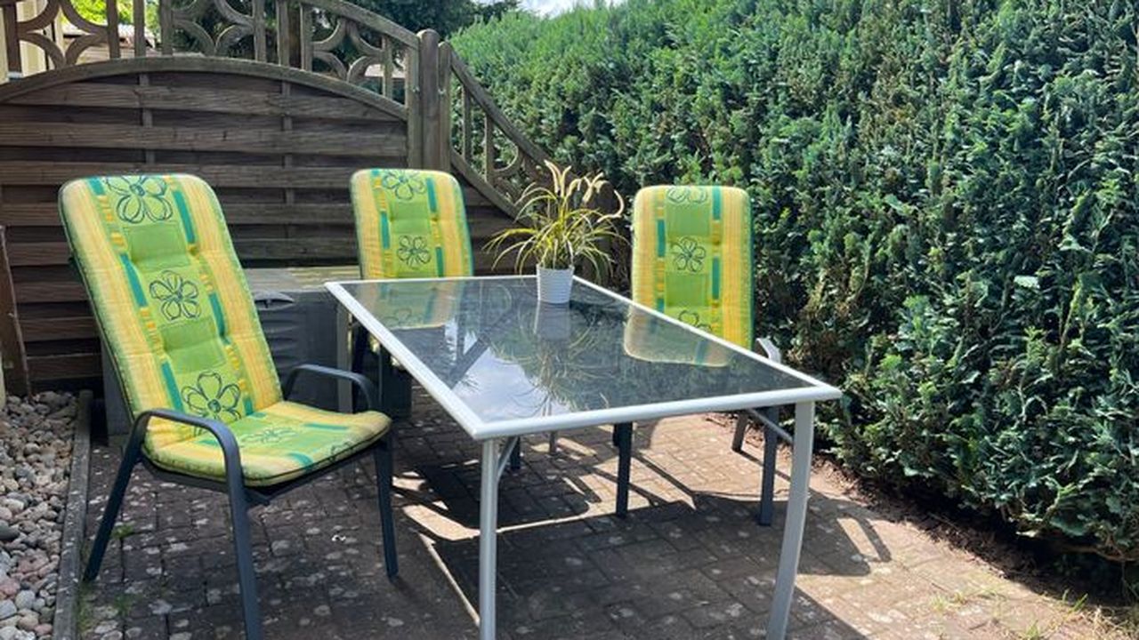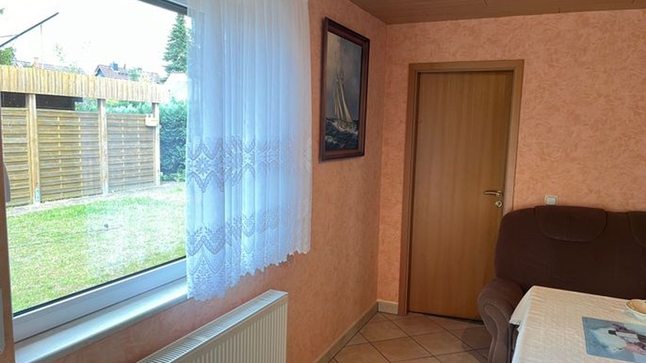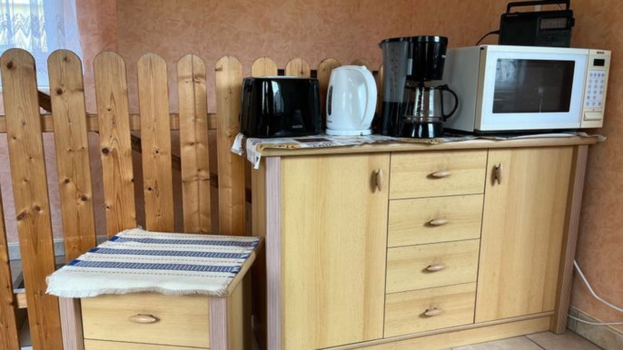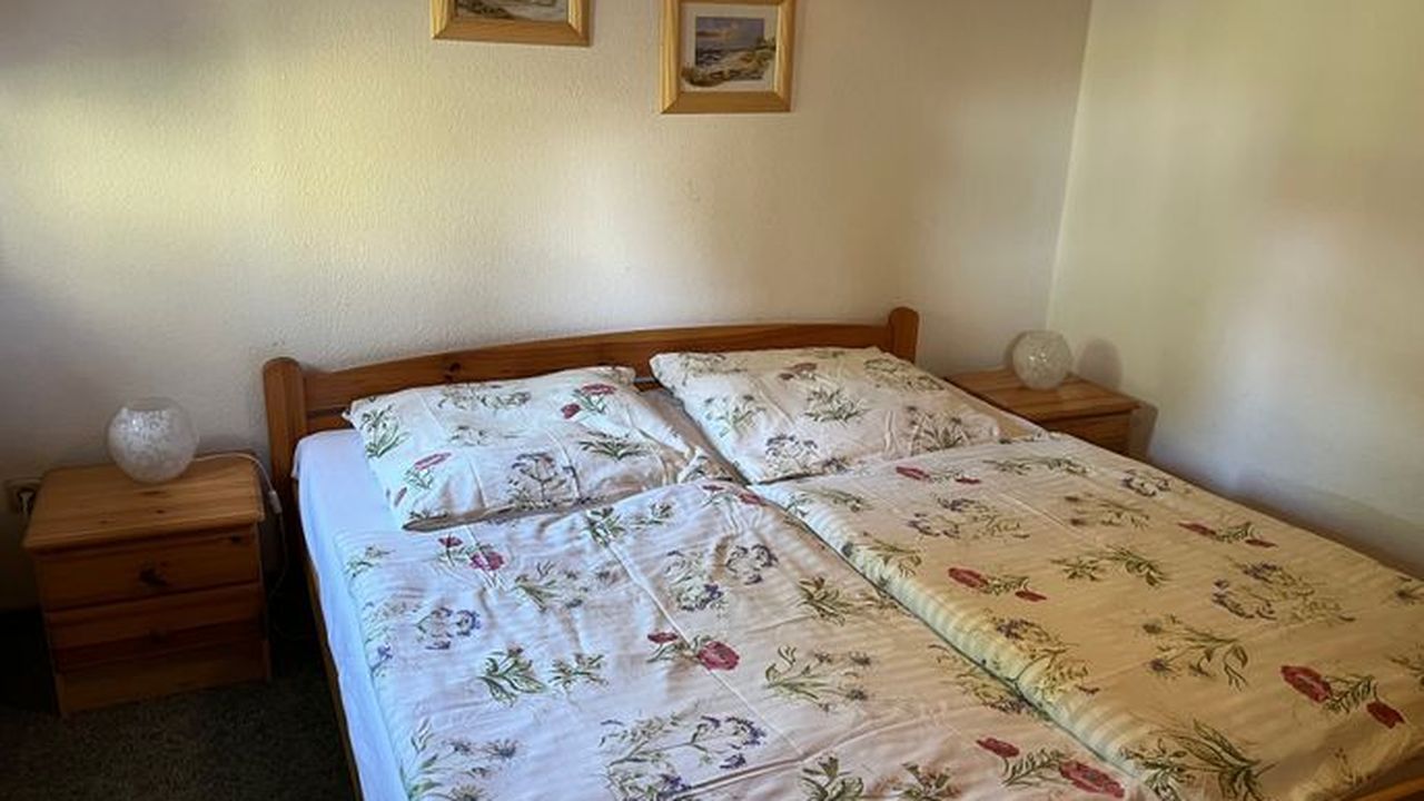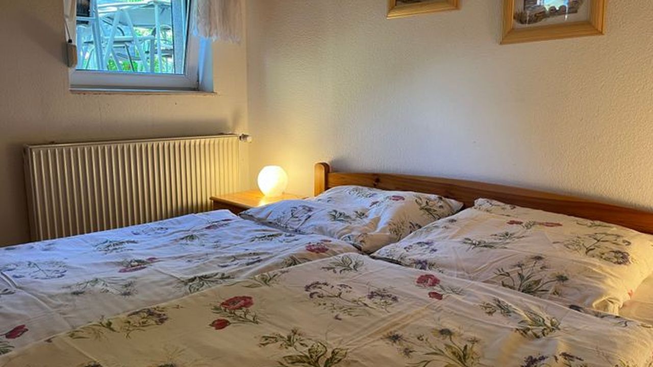 3-Raum-Ferienwohnung im Erdgeschoß, einfach und zweckmäßig eingerichtet. Wohnzimmer mit kleine Kochnische mit 2-Plattenherd, Kühlschrank, Toaster, Mikrowelle, Wasserkocher und Kaffeemaschine. 1 Schlafzimmer mit Doppelbett, 1 Schlafzimmer im Souterrain mit Doppelbett.Bettwäsche, Handtücher und Geschirrhandtücher sind mitzubringen (Laken für einzelne Matratzen) !