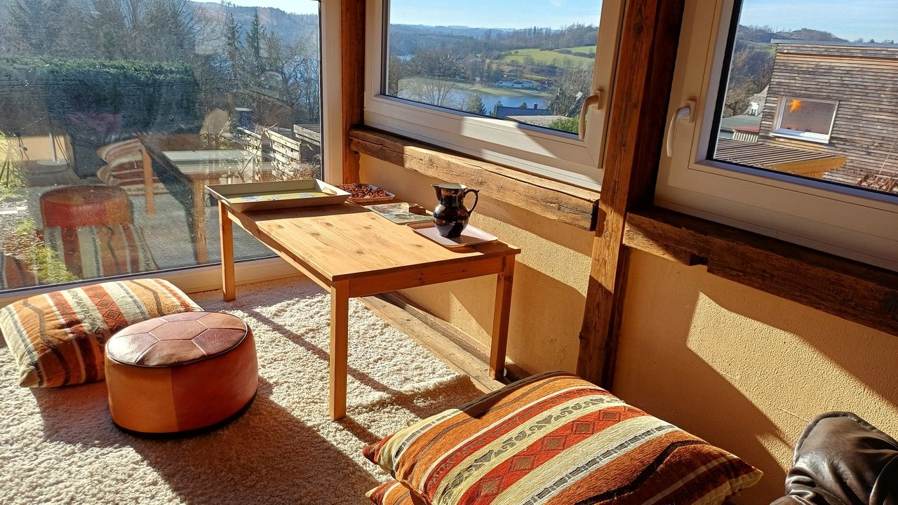 Das zweiteilige Dachgeschoß bietet eine zusätzliche Schlafmöglichkeit an. Der Raum und Blick aus dem Panoramafenster: lässt Sie hier, dem 7.Himmel nah, Ihre Seele baumeln!