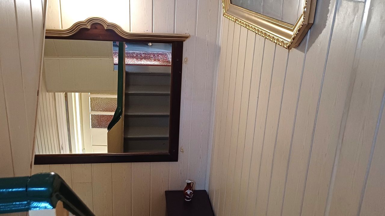 Im 1. OG liegen ein Retro-Schlafzimmer und ein gemütliches Kaminzimmer, mit ausziehbarer Schlaf-Ledercouch (für 2 Personen).