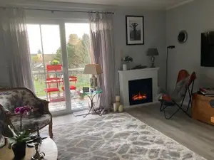 Das Wohnzimmer verfügt über einen großen Fachbildfernseher und einen elektrisch betriebenen Kamin, eine kuschlige Leseecke , ein Sofa sowie einen Essbereich, an dem gemütlich gespeist werden kann.