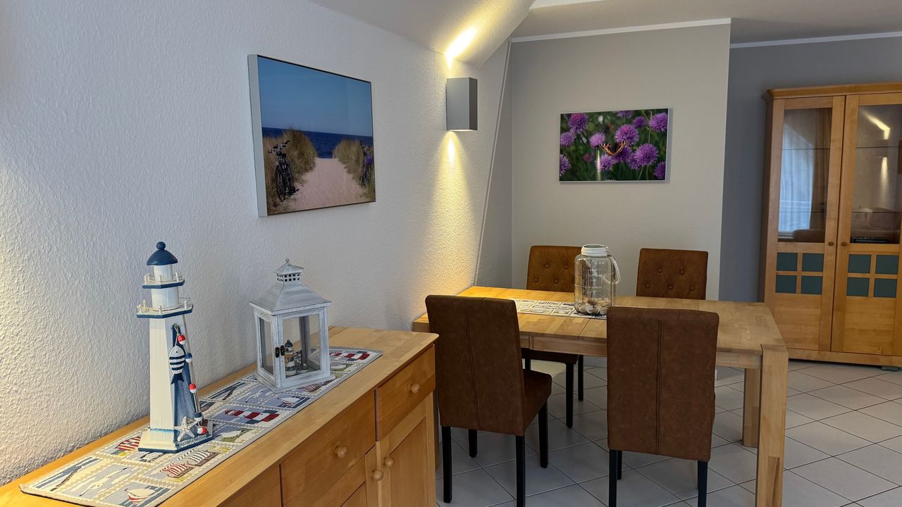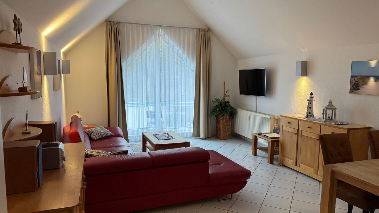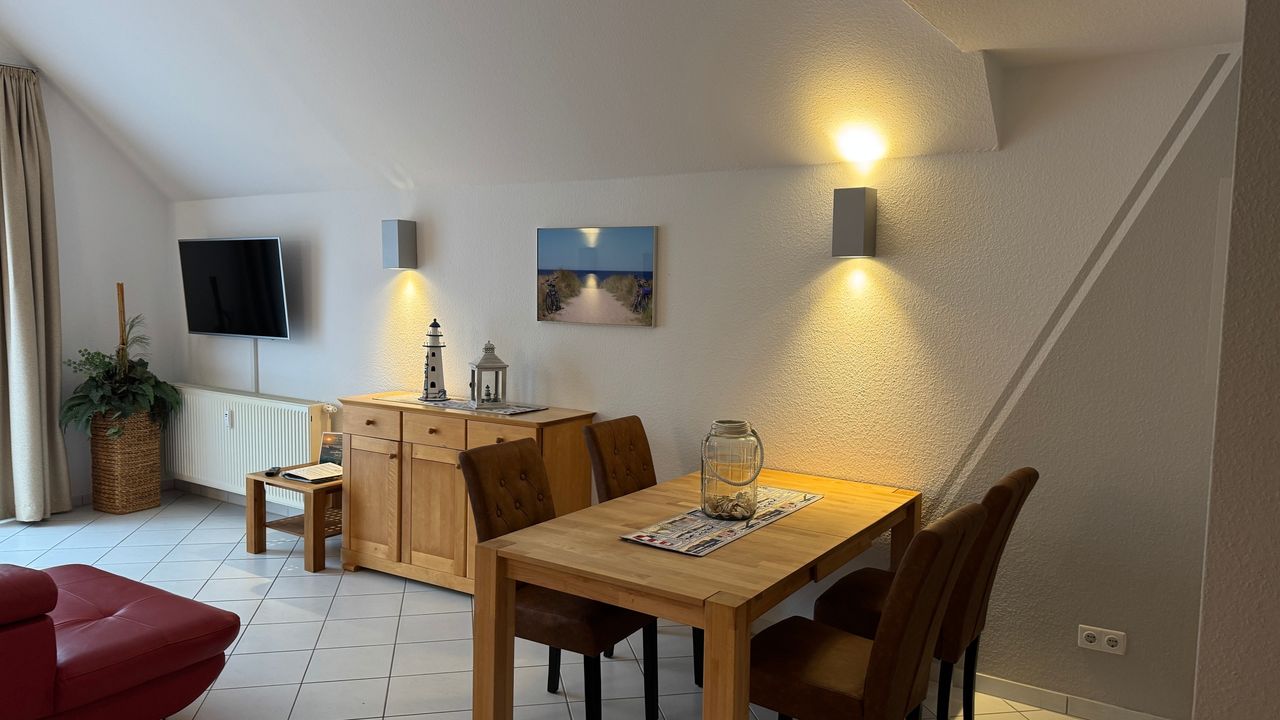 Das idyllische Ostseebad Zempin liegt auf der schmalsten Stelle Usedoms und gleichzeitig in der Inselmitte. Von dieser zentralen Lage aus können Urlauber die Insel Usedom hervorragend mit dem Auto, dem Fahrrad oder der Usedomer Bäderbahn erkunden. Das ehemalige Fischerdorf verfügt über einen flachen, steinlosen Ostseebadestrand mit feinstem Strandsand auf der einen Seite sowie einer romantischen Lage am Achterwasser (Naturpark Usedom) auf der anderen Seite. Mitten im Küstenwald, nahe der Ostsee, befindet sich die neue Strandpromenade mit großer Freilichtbühne. Hier finden in den Sommermonaten regelmäßig Konzertveranstaltungen statt. Ein besonderes Erlebnis ist es den Sonnenuntergang über der Ostsee von hier aus zu beobachten. Zempin gehört zu den kleinsten Seebädern auf Usedom, wodurch sich der Ansturm an Urlaubern und Touristen in Grenzen hält. Der Ort strahlt zu jeder Jahreszeit Ruhe und Entspannung man könnte sagen familiäre Atmosphäre aus.Wohnungsbeschreibung