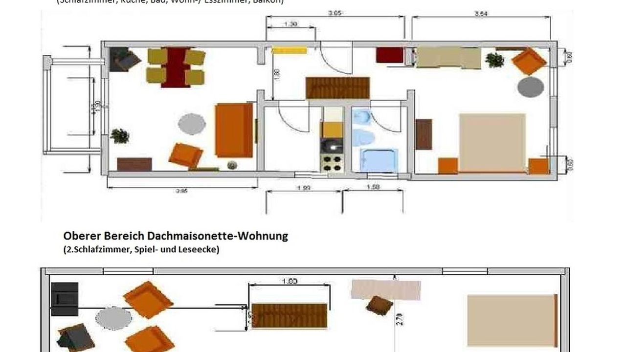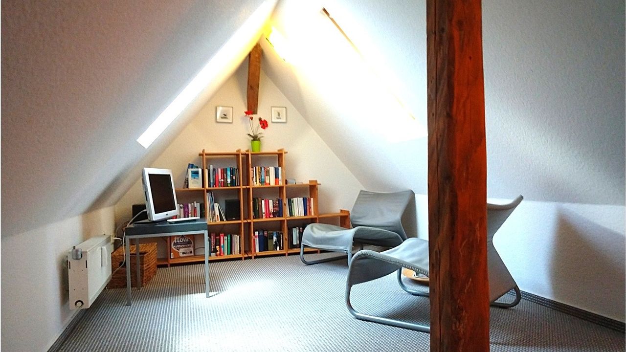 Achtung: Die Treppe ins Dachgeschoss ist sehr steil und ggf. für alte oder sehr junge Menschen nicht geeignet.