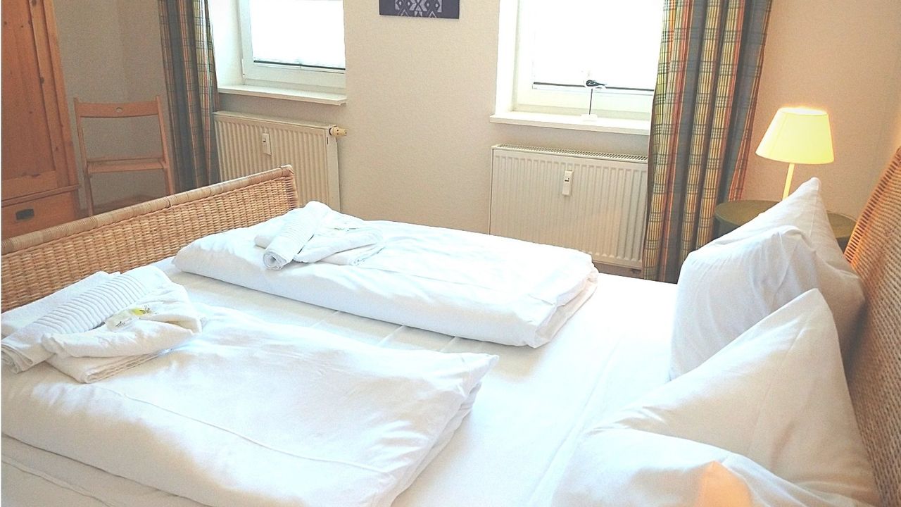 - ein großes Schlafzimmer mit Doppelbett (ein Kinderbettchen lässt sich hier zusätzlich problemlos unterbringen)