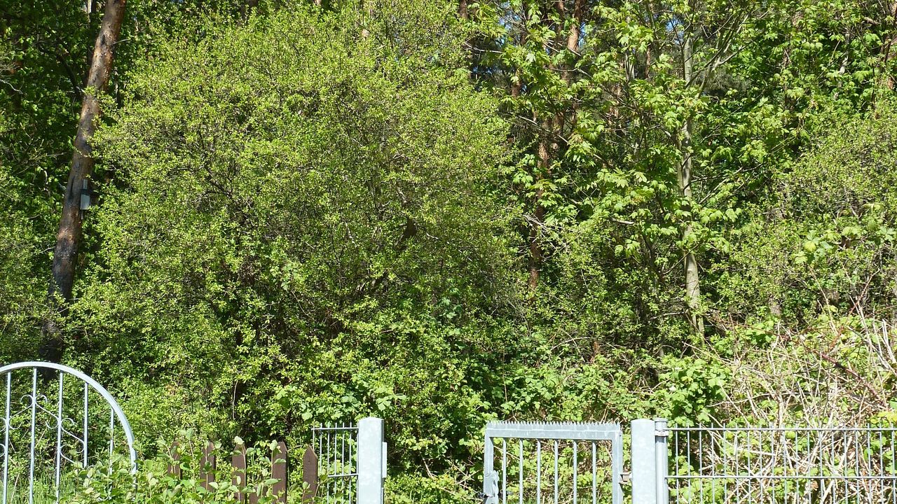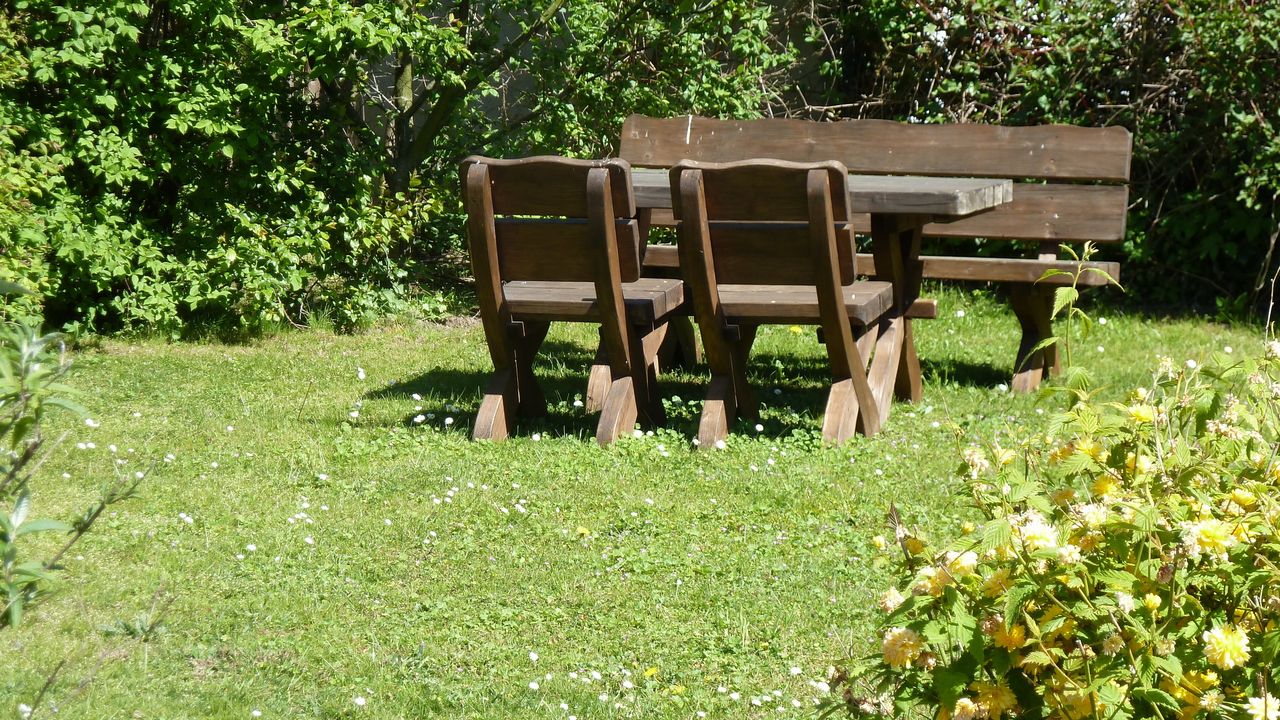 Gartenecke mit Sitzbank (zusätzlich zum eigenen Balkon) im Grundstück mit Blick zum Stadtwald