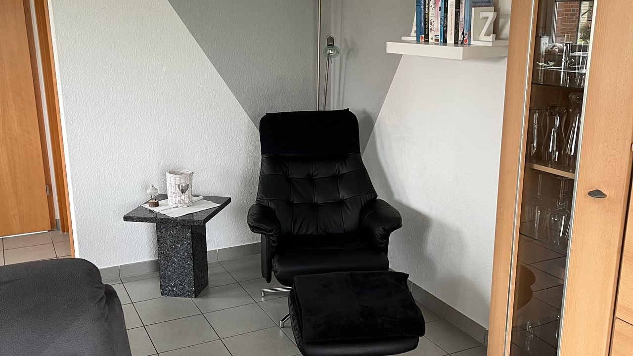 Wohnzimmer mit LCD-TV (Sat-Anlage), Radio mit CD-Player, Relax-Sessel und gemütlicher Couch