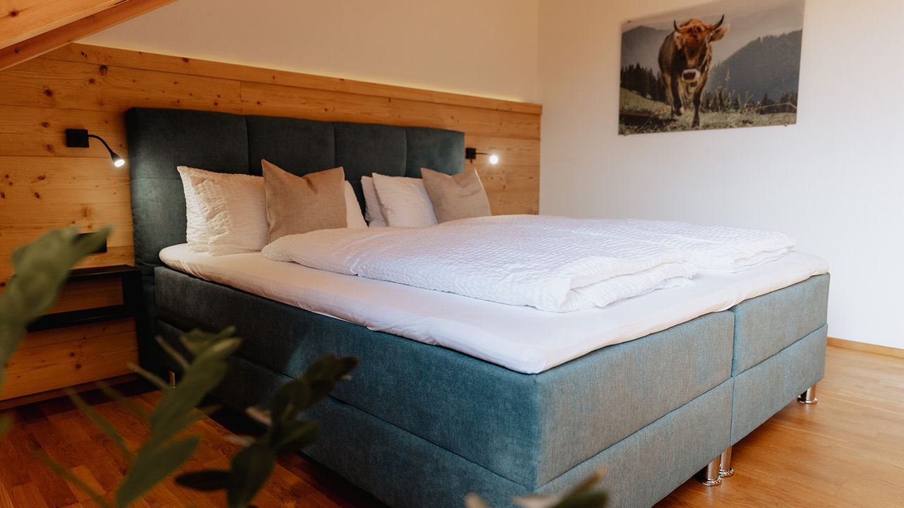 Das Alpen Apart Allgäu ist eine neue Ferienwohnung in Oy-Mittelberg im Allgäu mit Platz für die ganze Familie, Eure Freunde und auch für Euch als Paare, mit Anspruch an Qualität und Komfort.Die Ferienwohnung wurde in traditioneller Holzbauweise und mit hochwertigen Naturmaterialien verwirklicht. Stilvoll erlebt Ihr Qualität, Ruhe und eine atemberaubende Aussicht. Genießt den Komfort von 125 m² im Alpen Apart Allgäu, mit 3 Schlafzimmern, die jeweils mit einem gemütlichen Doppelbett ausgestattet sind. Im Wohnzimmer steht zudem ein Schlafsofa zur Verfügung. Kinder unter 3 Jahren können zusätzlich im Elternbett schlafen. Außerdem stehen 2 Babybetten zur Verfügung