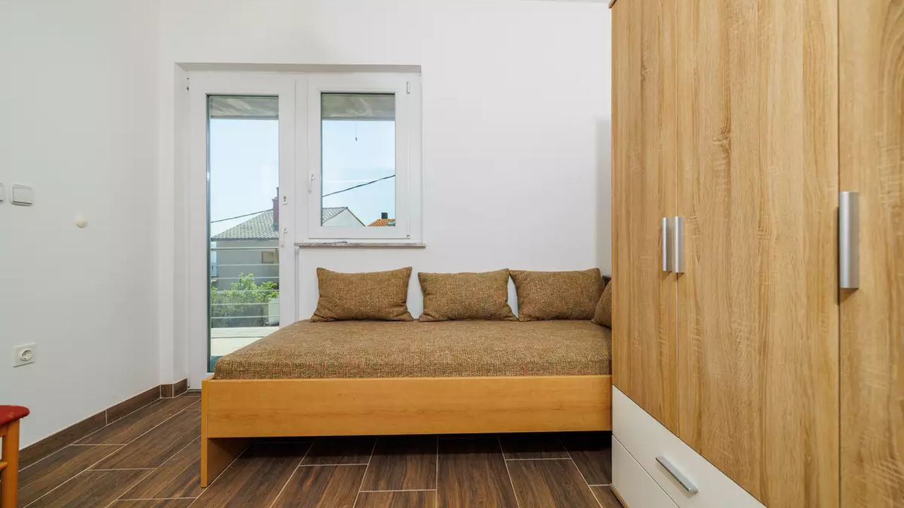 Die gem and uuml;tliche Ferienwohnung in Crikvenica bietet Platz f and uuml;r zwei bis drei Personen und ist ideal f and uuml;r einen erholsamen Aufenthalt an der kroatischen Adriak and uuml;ste.Die klimatisierte Unterkunft verf and uuml;gt and uuml;ber einen Wohn- und Essbereich mit einer gut ausgestatteten K and uuml;che, in dem sich auch eine zus and auml;tzliche Schlafgelegenheit f and uuml;r eine Person befindet. Ein separates Schlafzimmer sorgt f and uuml;r erholsame N and auml;chte, w and auml;hrend das moderne Badezimmer Komfort und Funktionalit and auml;t vereint.