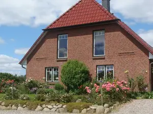 Urlaub auf dem Lande:Ruhig gelegene Ferienwohnung mit schöner Aussicht auf Felder und Wälder, in der Ferne liegt Arnis bzw. die Schlei. Zum Bauernhof (Milchviehhaltung, Getreideanbau) gehörendes Haus, gelegen an einer Nebenstraße, die auch zugleich empfohlener Radwanderweg ist. Das Grundstück hat einen großen Garten und grenzt mit seinem Gemüsegarten an den Obstgarten des Bauernhofs. Die Terrasse für die Gäste befindet sich im Winkel nach Westen mit Abendsonnenschein. . Dort befindet sich auch die Liegewiese.
