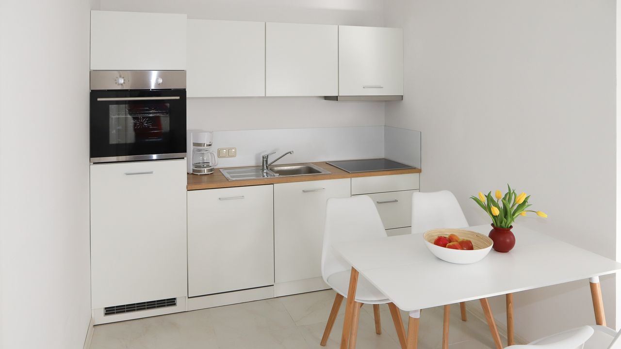 Die neu modernisierte und möblierte Ferienwohnung befindet sich im Erdgeschoss. Sie besteht aus einen Wohnzimmer mit Küche und Esstisch, mit ausklappbarer Schlafcouch, einem Schlafzimmer und einem Duschbad.