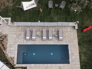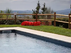 Sie verfügt über einen großen Außenbereich, wo Sie einen Grill und einen ausgestatteten Bereich finden, wo Sie Ihre Mahlzeiten im Freien genießen können. Der Poolbereich (8 x 3 Meter, maximale Höhe 1,4 Meter) ist den ganzen Tag über der Sonne ausgesetzt und ist mit Sonnenliegen und Sonnenschirmen ausgestattet.