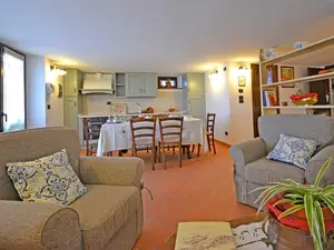 Die Innenräume von Villa Anita sind geräumig, hell und durch Decken mit freiliegenden Holzbalken und Terrakottaböden geprägt, die an den rustikalen toskanischen Stil erinnern, der auf der ganzen Welt berühmt ist. Die Villa erstreckt sich über drei Etagen und ist in drei Wohnungen aufgeteilt, die miteinander kommunizieren. Eine Eigenschaft, die es für große Gruppen ideal macht, alle zusammen zu sein und gleichzeitig die Privatsphäre zu wahren. Man kann das Erdgeschoss von drei verschiedenen Eingängen aus erreichen: der erste Eingang bietet Zugang zu einem Wohnzimmer mit Steinkamin, Sofa und Sat-TV, das zu einer voll ausgestatteten Küche und einem Esstisch sowie zu einem Einzelzimmer, einem Doppelzimmer und einem Schlafzimmer mit Badezimmer mit Dusche führt. Über den zweiten Eingang gelangen Sie in den größten Raum des Hauses, der mit einem Steinkamin und einem großen Esstisch ausgestattet ist. Von hier aus gelangt man über eine Steintreppe in den ersten Stock, wo sich ein Hauptschlafzimmer mit Bad mit Dusche und Badewanne befindet. Der Salon führt in eine zweite Küche, die ebenfalls komplett mit Esstisch und Sat-TV ausgestattet ist. Das Erdgeschoss wird durch zwei weitere Schlafzimmer ergänzt, ein Doppel- und ein Schlafzimmer mit Etagenbett und Badezimmer mit Dusche.