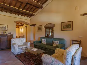 Die Innenräume der Villa il Gelso sind im toskanischen Stil gehalten: Terrakottaböden und freiliegende Holzbalken charakterisieren die Umgebung und geben uns einen Einblick in die toskanische Architektur. Die Villa ist groß und auf zwei Ebenen durch eine Außentreppe verbunden unterteilt. Sie kann bequem 16 Personen beherbergen und verfügt über Hochstühle und Kinderbetten (auch auf Anfrage). Ursprünglich in Appartements aufgeteilt, wird die Villa il Gelso heute als exklusiver Wohnblock vermietet, behält aber eine Unterteilung bei, die es sowohl Familien als auch Freundesgruppen ermöglicht, einen gemeinsamen Aufenthalt zu verbringen und gleichzeitig den verschiedenen Gruppen ihre Unabhängigkeit zu lassen. Sie verfügt über 8 Schlafzimmer und 8 Bäder und eine große, voll ausgestattete Küche im Erdgeschoss mit Wohnzimmer, das zum Treffpunkt der ganzen Gruppe im Namen der Geselligkeit wird.