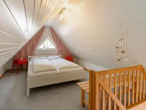 Bei dem Schlafzimmer mit Doppelbett handelt es sich um ein offenes Galerieschlafzimmer, durch Vorhang abtrennbar.Bei dem Einzelbett im Wohnzimmer handelt es sich um ein Alkovenbett.