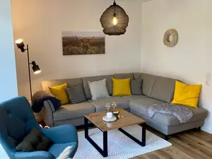 Offener Wohnbereich: Der großzügige Wohnraum mit einer komfortablen Couchlandschaft und einem Essbereich lädt zum Verweilen und Entspannen ein.