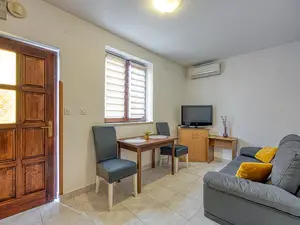 Das Apartment N4 besteht aus einem Schlafzimmer mit einem Doppelbett, einem Badezimmer mit Dusche und einer Küche mit Esszimmer, in dem sich eine Klimaanlage und ein Fernseher befinden. Vor dem privaten Haupteingang der Wohnung befindet sich eine Sitzecke im gepflasterten Teil des Gartens. Der berühmteste Strand von Poreč, Materada, ist nur 750 m entfernt. Private Parkplätze befinden sich auf der Straße, stehen Ihnen zur Verfügung und sind kostenlos. Haustiere sind gegen Gebühr erlaubt.